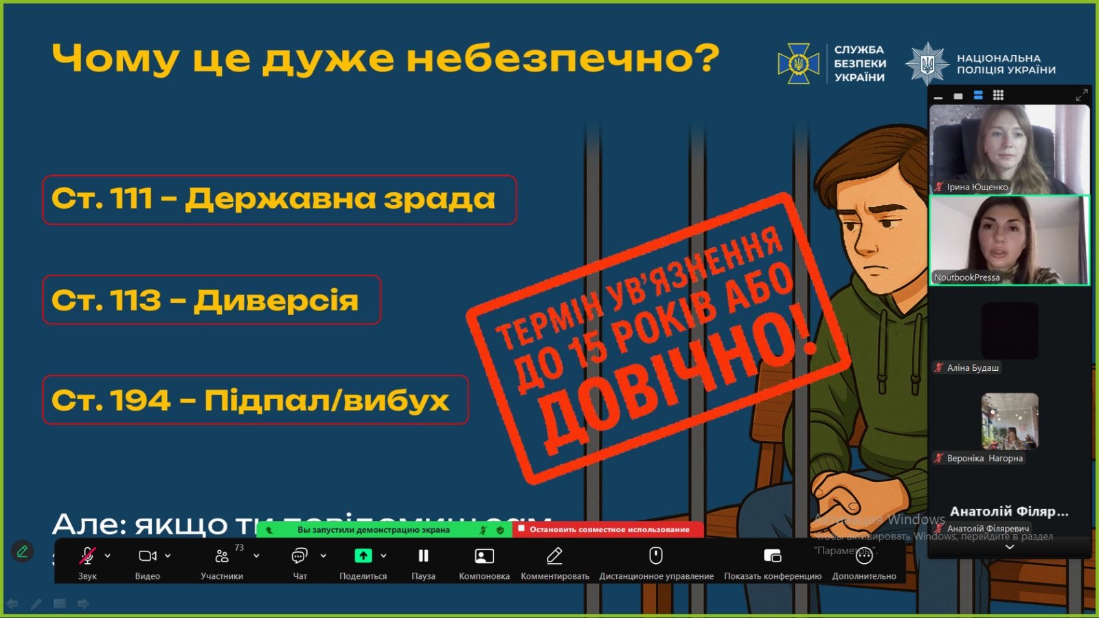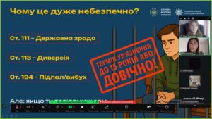 Наголошувалося на тому, що такі пропозиції мають смертельні наслідки і є злочином. Людей просто використовують. Результатом може стати зрада країни, каліцтво або тюрма. Будь-які дії, як-от підпал, “посилка”, або встановлення GPS-мітки, прирівнюються до тероризму, а фотографування військових об’єктів є допомогою ворогу. Було підкреслено, що наслідки є реальними, а не “віртуальними”. ❗️❗️❗️