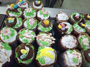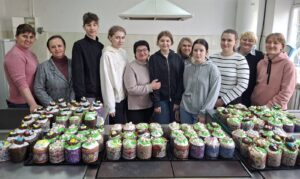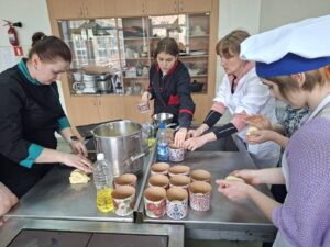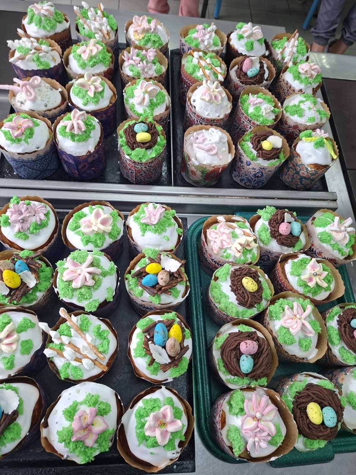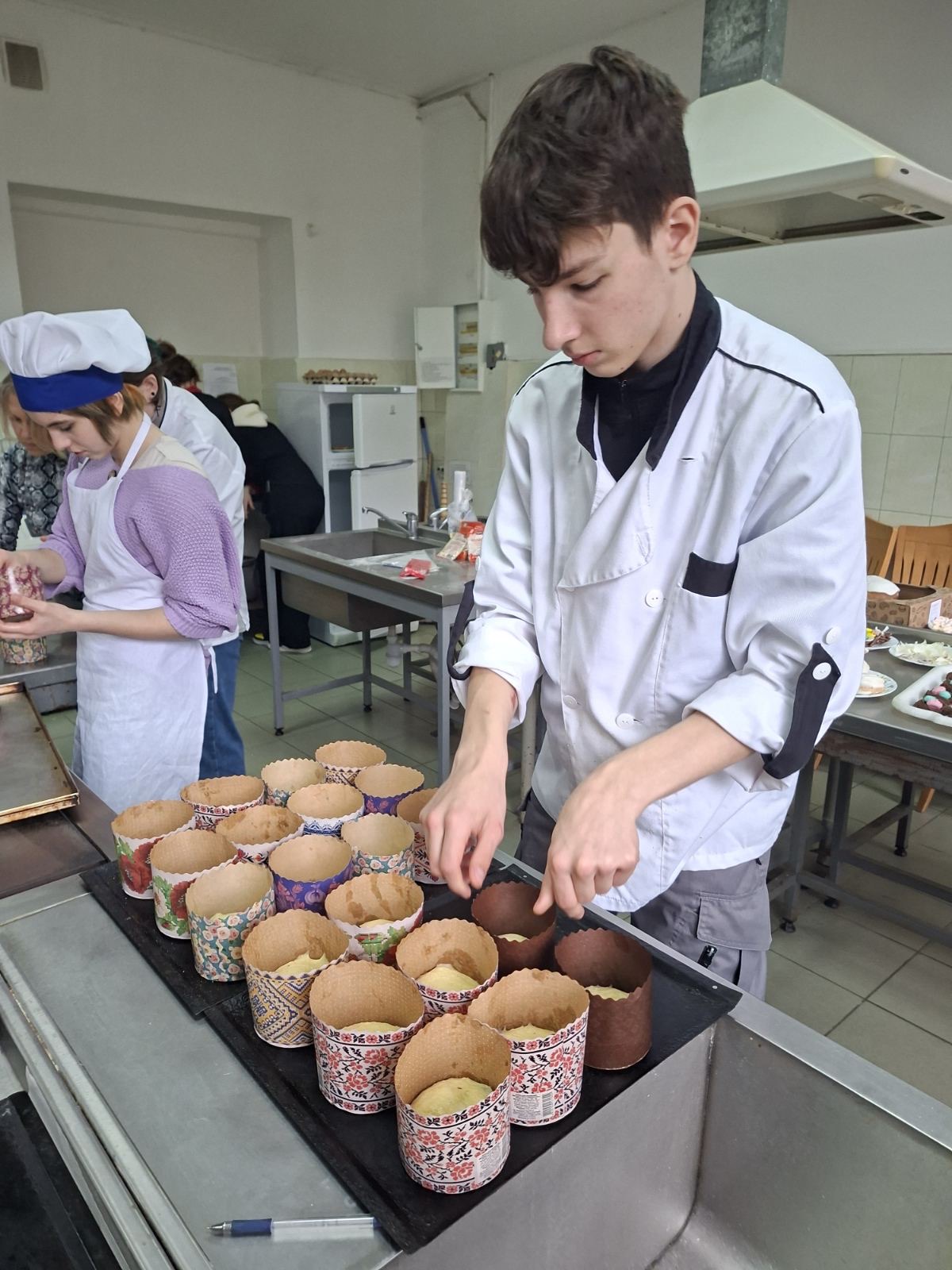 До ініціативи активно долучилися здобувачі освіти та викладачі циклової комісії харчових технологій, готельно-ресторанної справи та кейтерингу, об’єднавшись навколо важливої справи — випікання великодніх пасок для наших воїнів. Виробничий процес охоплював повний цикл приготування: підготовку сировини, заміс тіста з використанням опарного способу, контроль процесів бродіння, формування виробів, випікання з дотриманням температурних режимів, а також подальше охолодження та оздоблення готової продукції. Особлива увага приділялася якості готових виробів, органолептичним показникам та естетичному оформленню пасок із використанням традиційних і сучасних елементів декору.