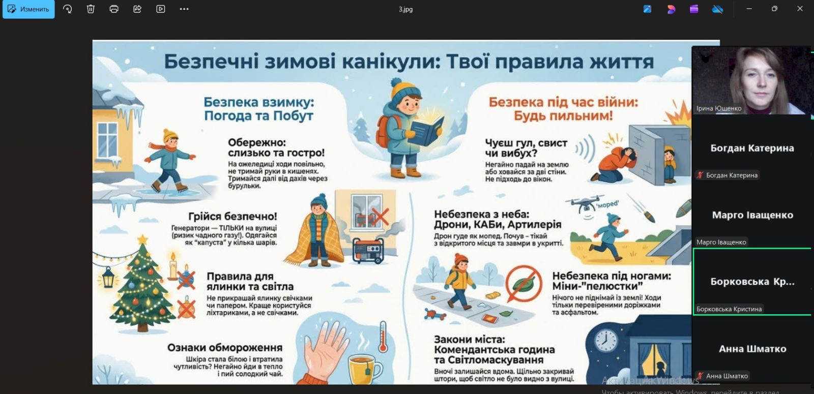 Проведена виховна година на тему «Безпечні зимові канікули: Твої правила життя» успішно актуалізувала знання здобувачів освіти щодо життєво важливих правил безпеки.