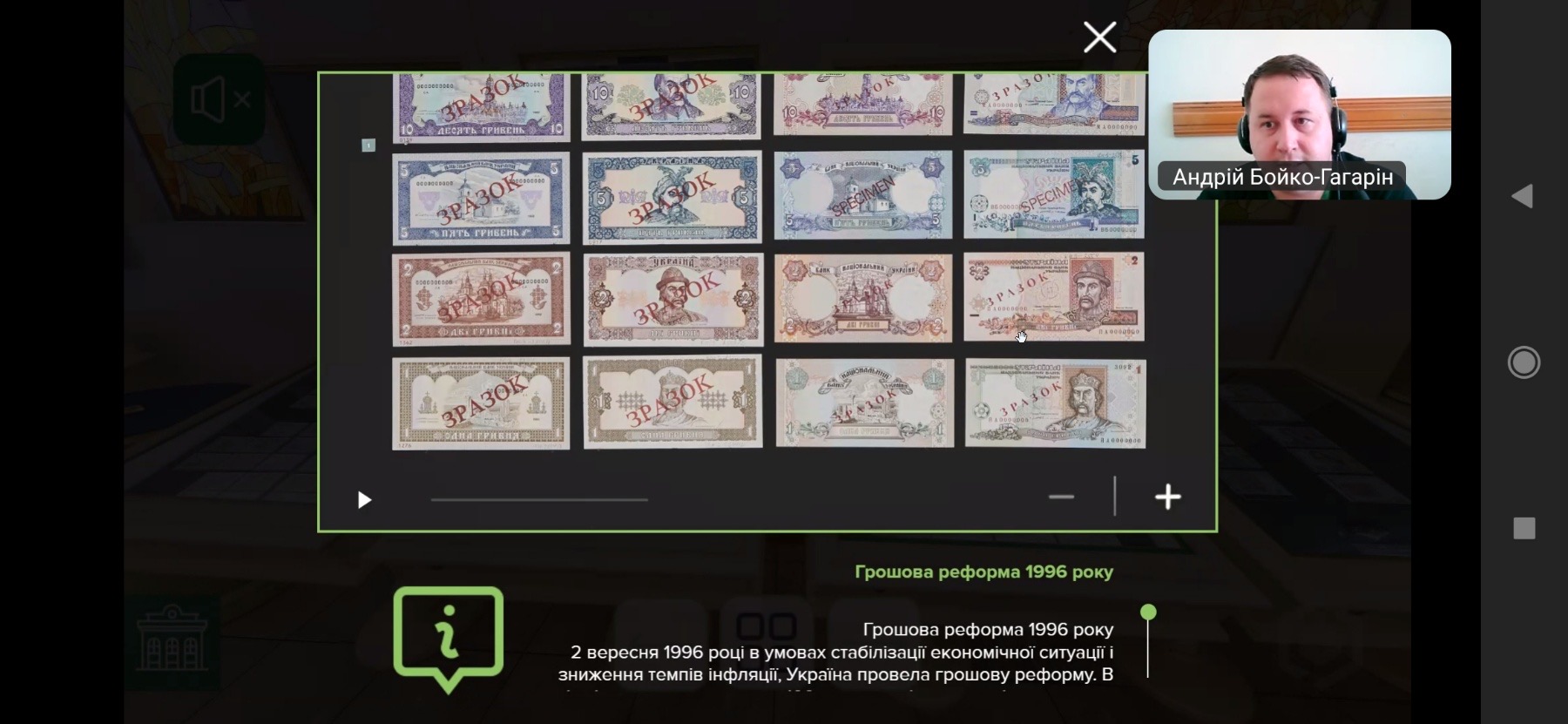 Учасники дізналися про особливості створення національної грошової одиниці – гривні: порядок розробки дизайну банкнот гривні, створення повного циклу виробництва національної валюти України, а також отримали відповідь на запитання: чому гривню ввели в грошовий обіг у 1996 році?