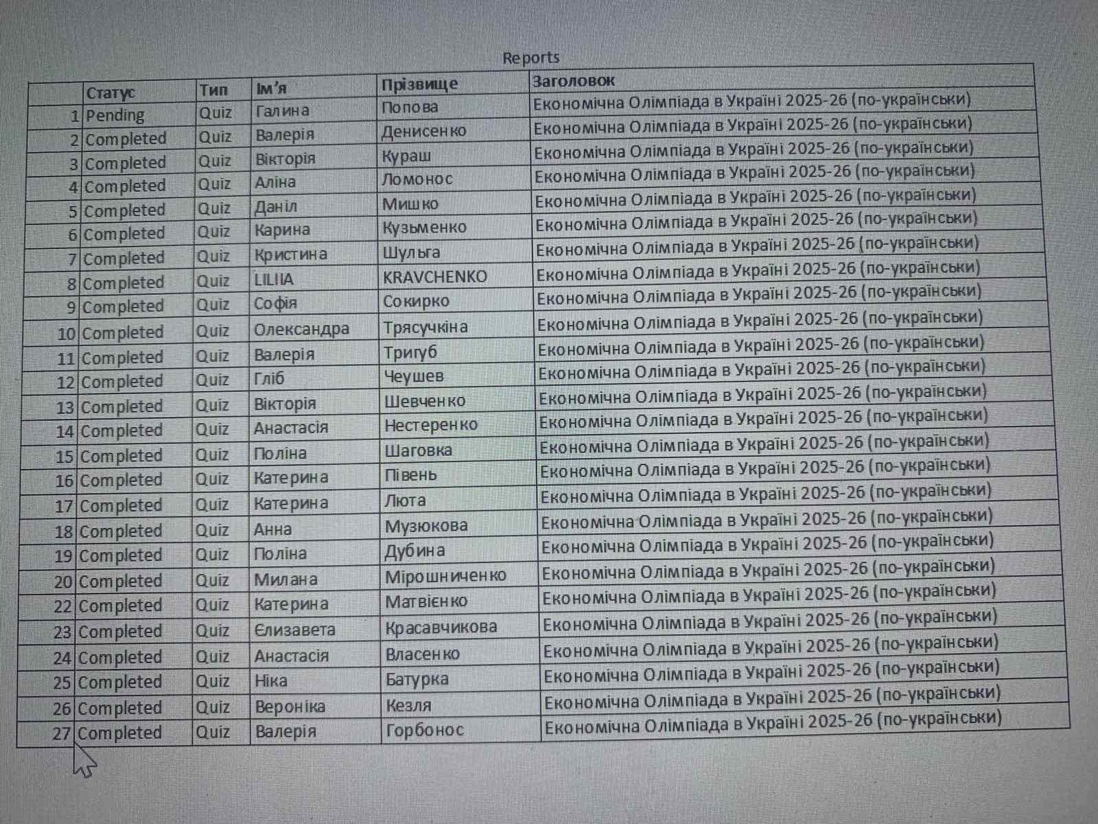 В період з 25.11.25 по 15.12.25 викладачі Галина ПОПОВА, Ірина МУЗИЧКО та Вікторія ПЕТРОВСЬКА разом із здобувачами економічного відділення ОПП Економіка, ОПП Облік і оподаткування та ОПП Фінанси, банківська справа, страхування та фондовий ринок гр. ЕП-12, ЕП-13, ОО-1, ФБ-11, ФБ-12, ФБ-13, взяли участь у першому етапі Економічної олімпіади.