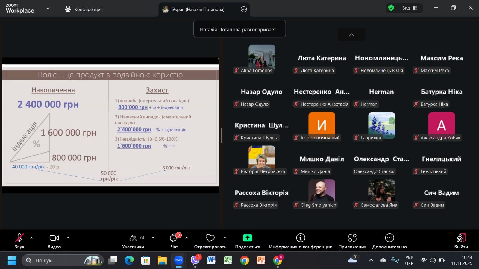 Під час інтерактивного заняття були розглянуті принципи формування особистого бюджету, створення “фінансової подушки безпеки” та встановлення реалістичних довгострокових фінансових цілей. Слухачідізналися, як працюють програми накопичувального страхування життя як ефективний інструмент довгострокових інвестицій та пенсійного забезпечення.Особливу увагу було приділено важливості страхування життя як інструменту захисту фінансового добробуту сім’ї від непередбачуваних подій. На практичних прикладах було продемонстровано, як працює ефект капіталізації і чому важливо починати заощаджувати та інвестувати якомога раніше.