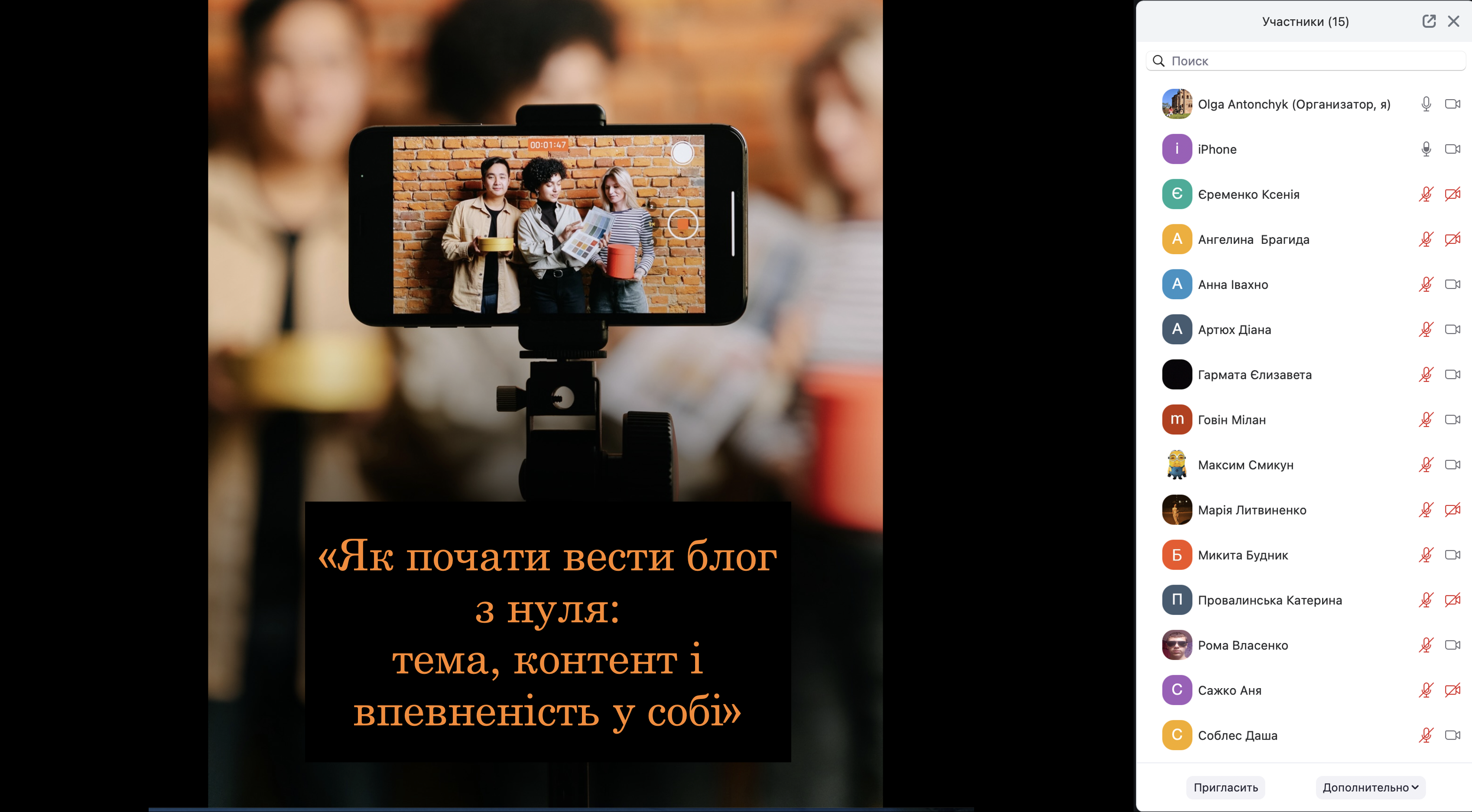 Під час зустрічі студентам було представлено поради щодо вибору теми блогу. Лекторка наголосила, що важливо орієнтуватися не лише на тренди, а й на власні інтереси, компетенції та цінності, адже це забезпечує автентичність і довготривалу мотивацію.