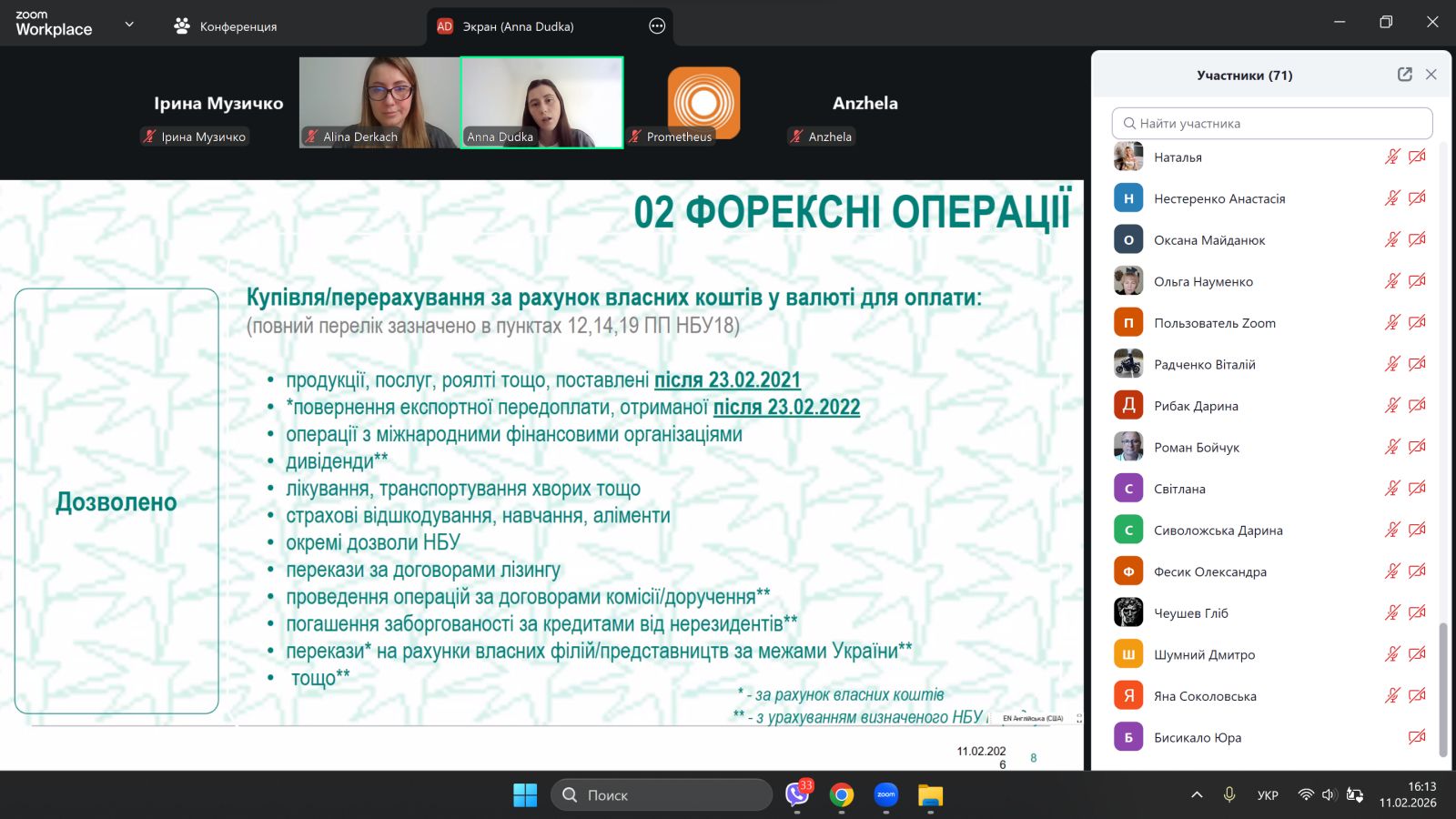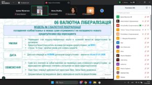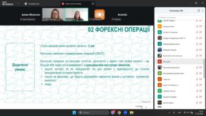 Спікерка лекції, Анна ДУДКА, головна фахівчиня за торговими операціями Центру валютного нагляду в UKRSIBBANK BNP Paribas Group, розповіла про валютний нагляд під час торгових операцій;