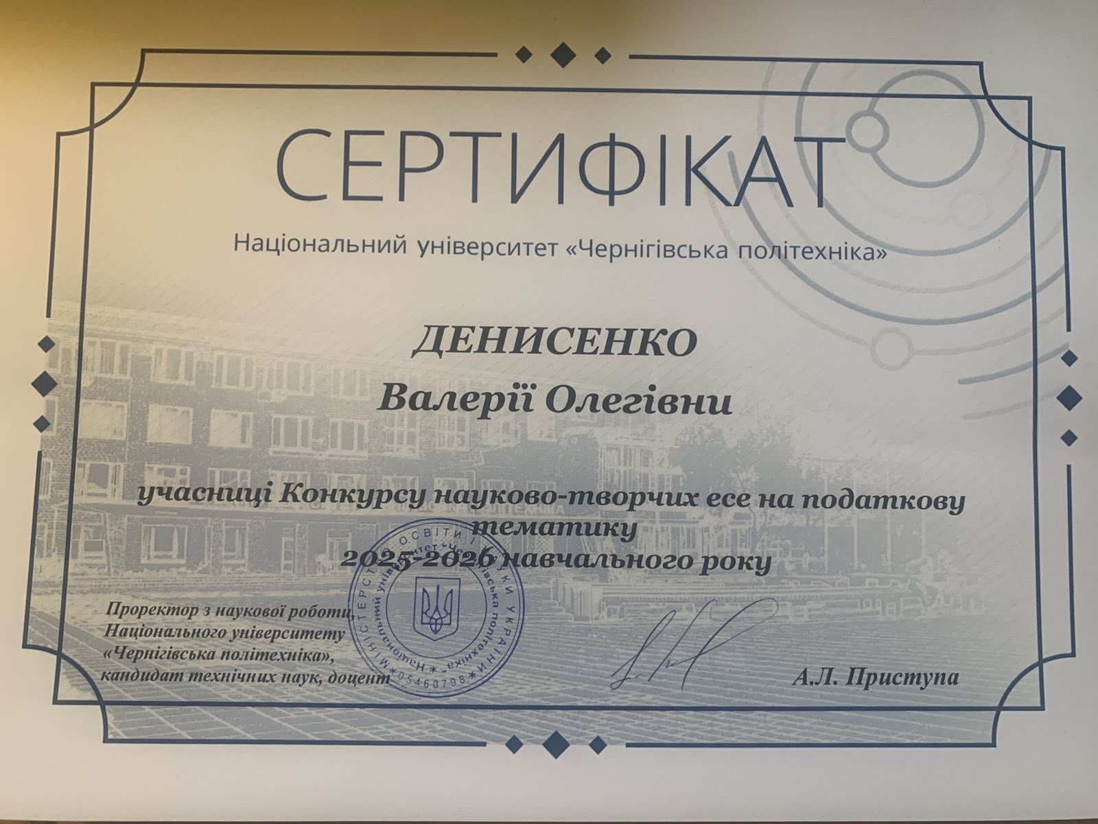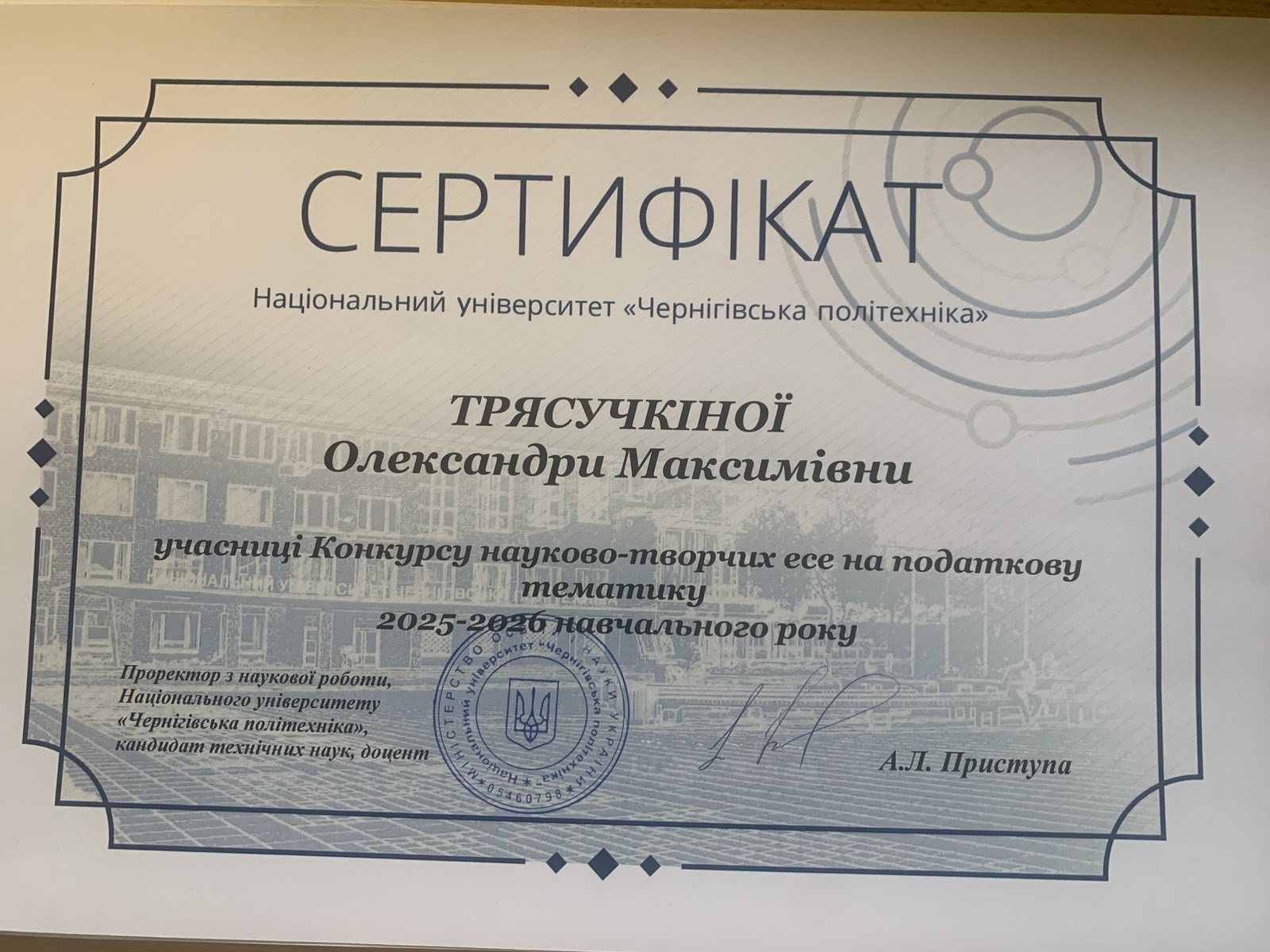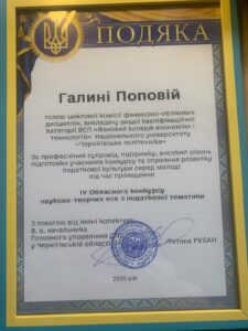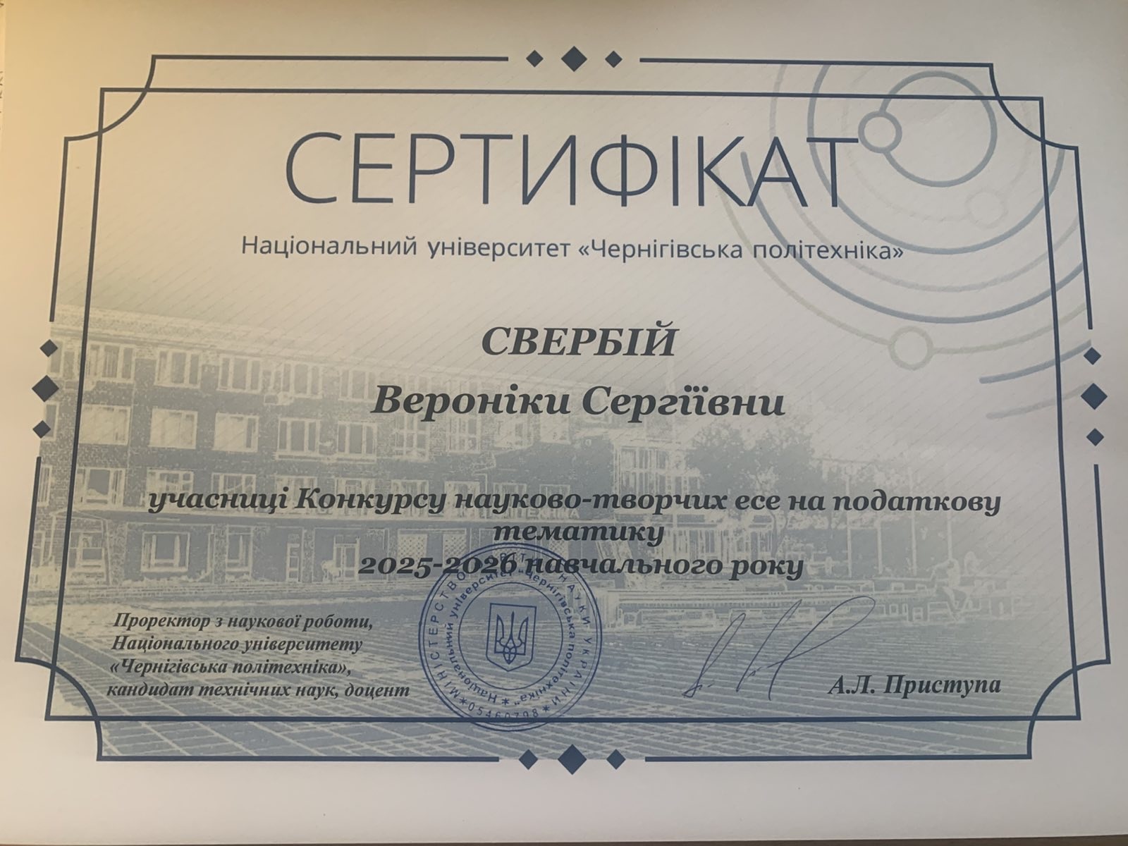 10 грудня 2025 року викладачі Галина ПОПОВА, Вікторія ПЕТРОВСЬКА та здобувачі груп Т-12, ЕП-12, ЕП-13, ФБ-11, ФБ-12 у стінах Головного управління ДПС у Чернігівській області під час Форуму “Наскрізь”: чесний погляд молоді на податки відбулося урочисте нагородження переможців та учасників ІV Обласного конкурсу науково-творчих есе на податкову тематику, який організовує кафедра економіки, обліку і оподаткування Національного університету «Чернігівська політехніка».