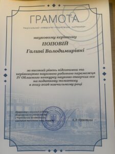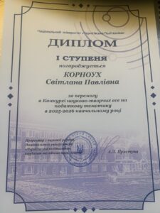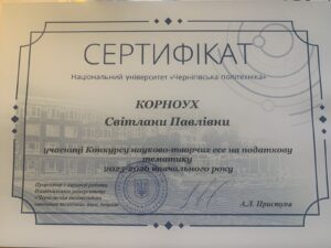 1. Корноух Світлана, диплом І ступеня та сертифікат учасниці конкурсу