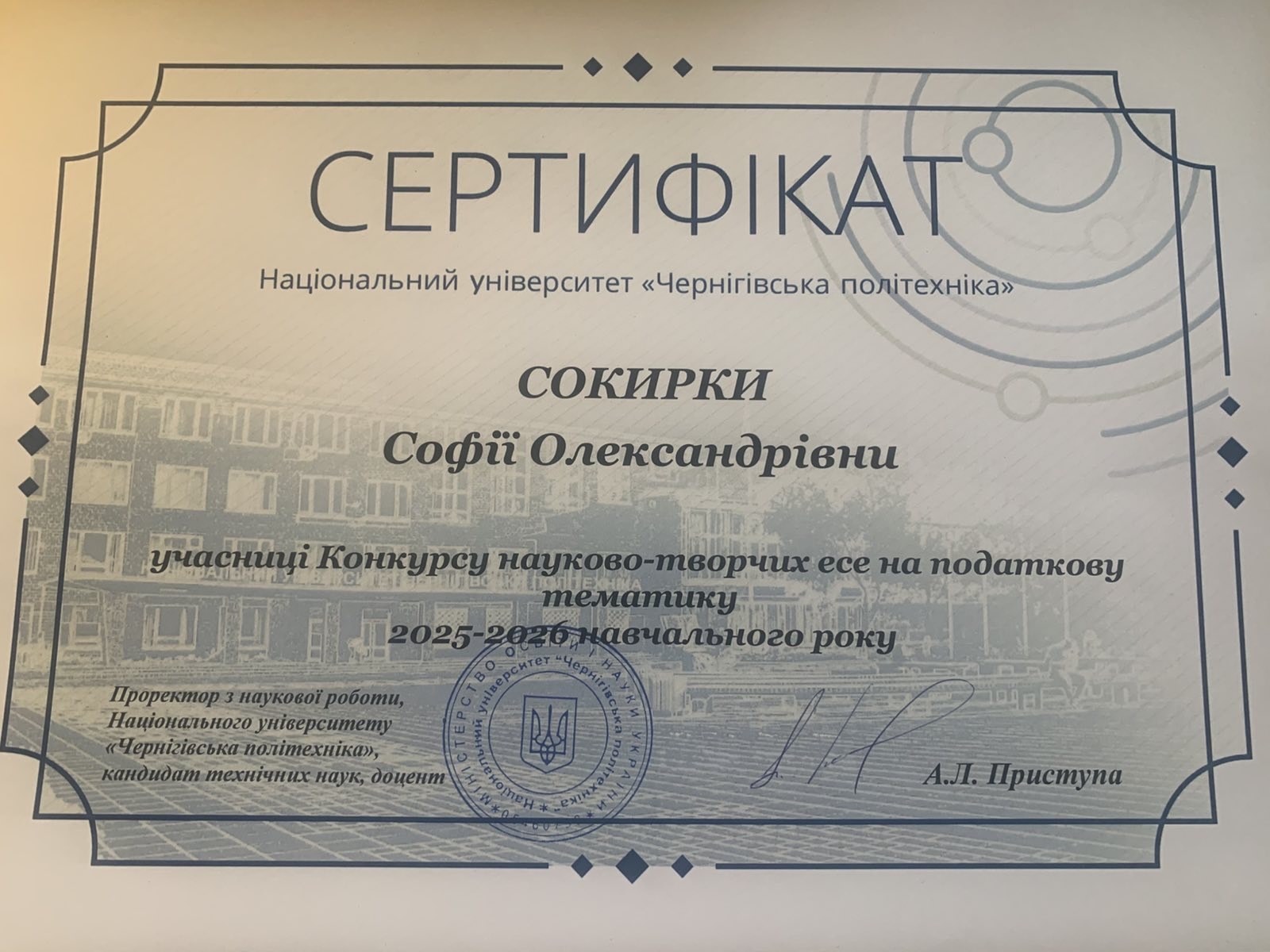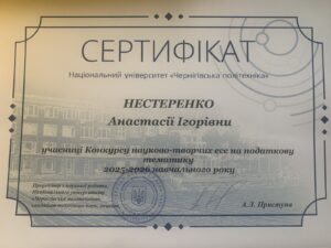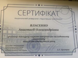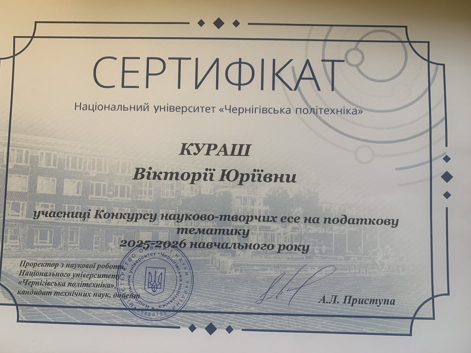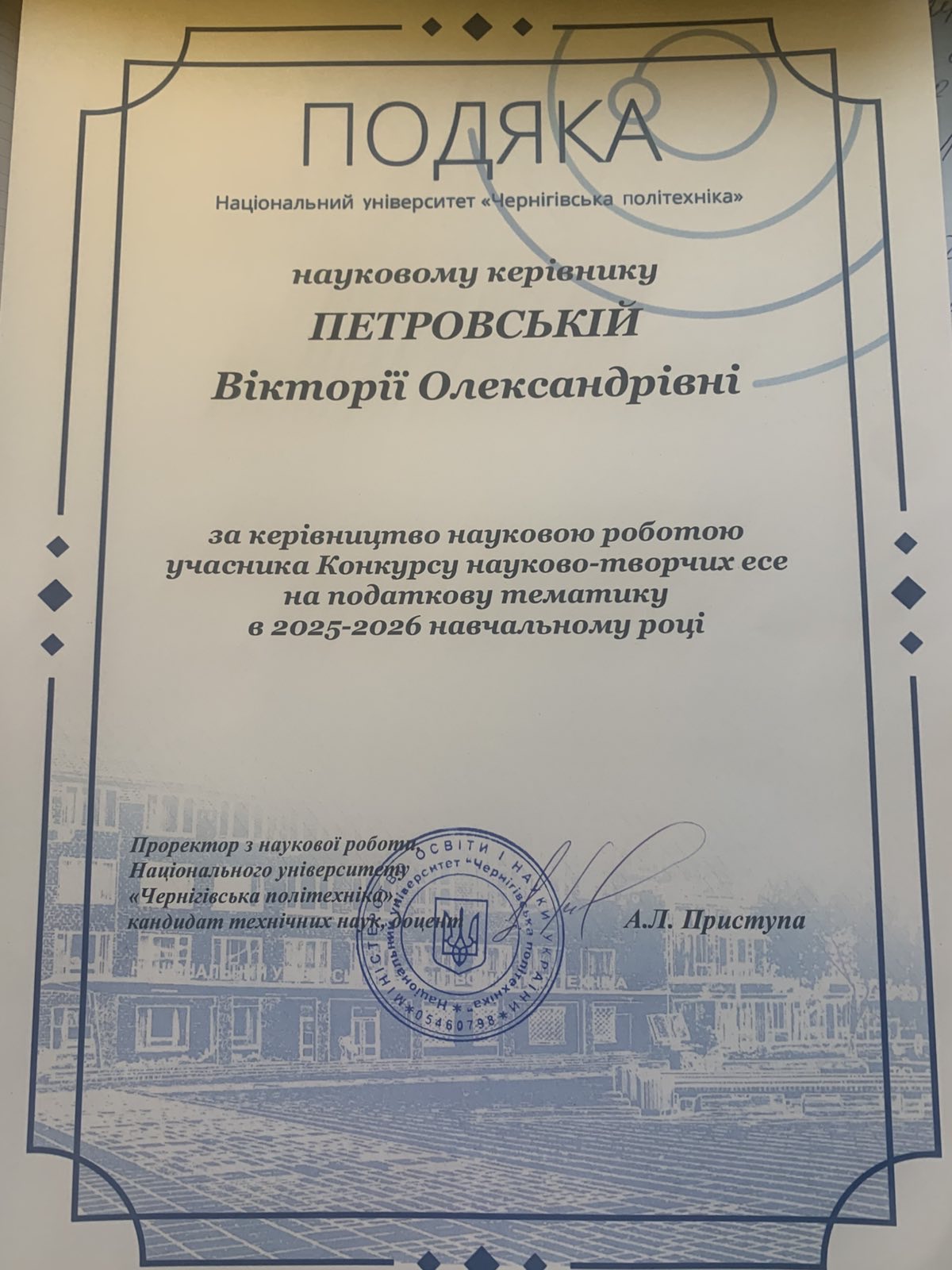 Щиро дякую організаторам конкурсу та Форуму, зокрема кафедрі економіки, обліку і оподаткування, за високий рівень підготовки, підтримку молоді та створення простору для розвитку науково-творчого потенціалу здобувачів освіти. Атмосфера події сприяла відкритому діалогу, професійному зростанню та формуванню відповідального ставлення до податкової культури.