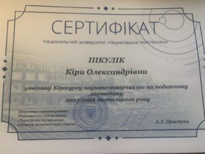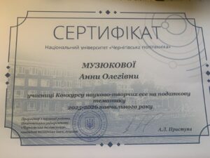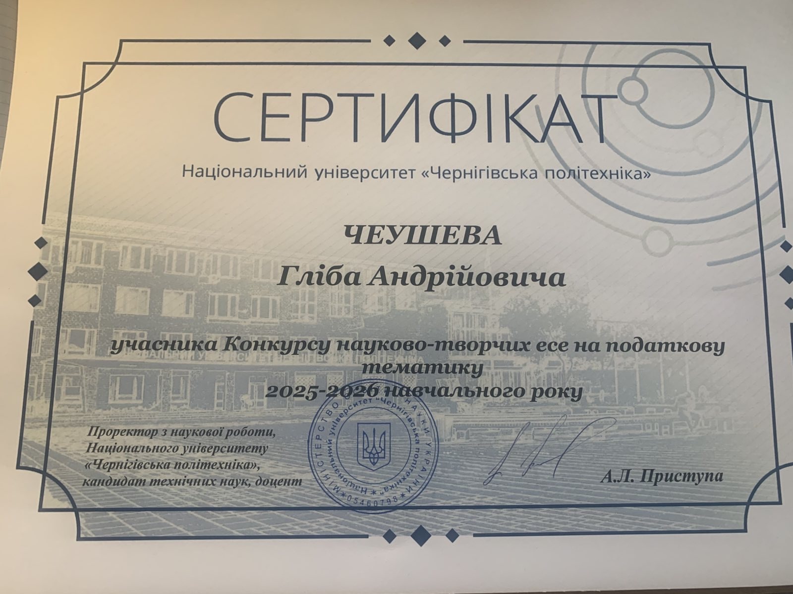 2. Чеушев Гліб, сертифікат учасниці конкурсу