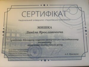 4.Мишко Данііл, сертифікат учасниці конкурсу