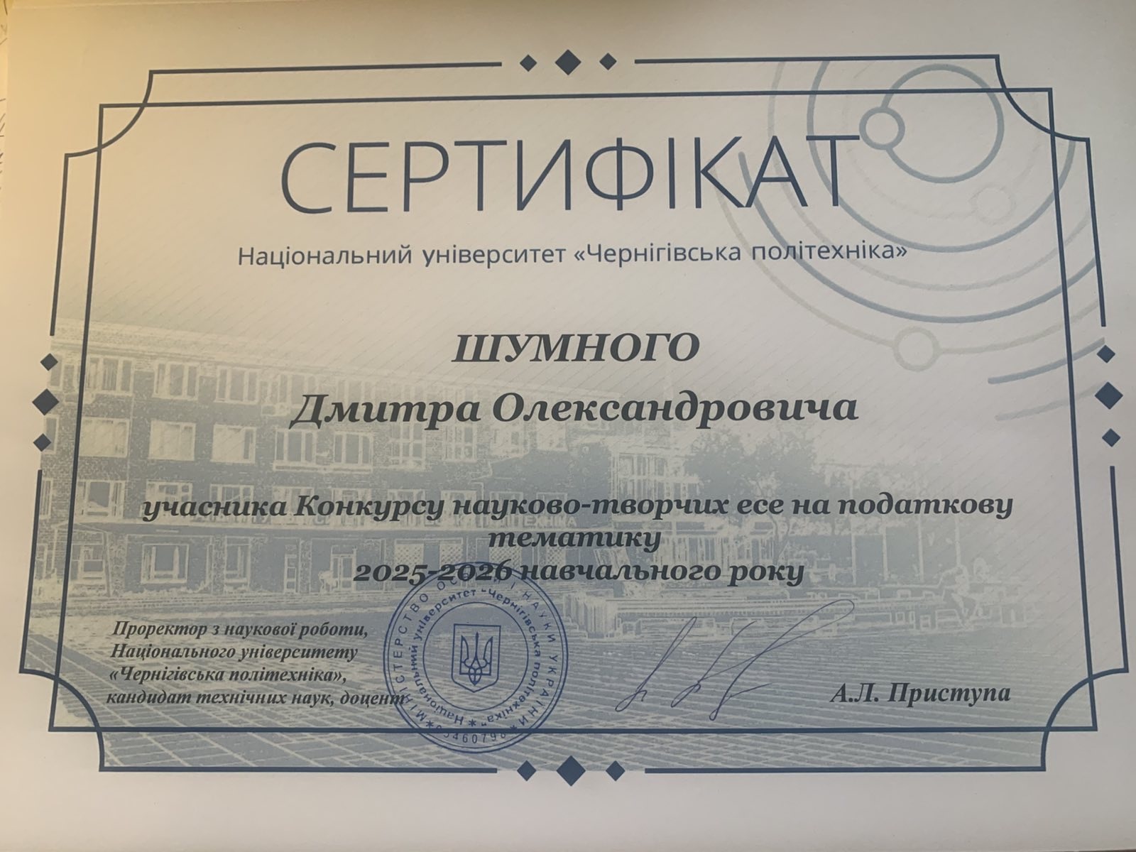 5. Шумний Дмитро, сертифікат учасниці конкурсу