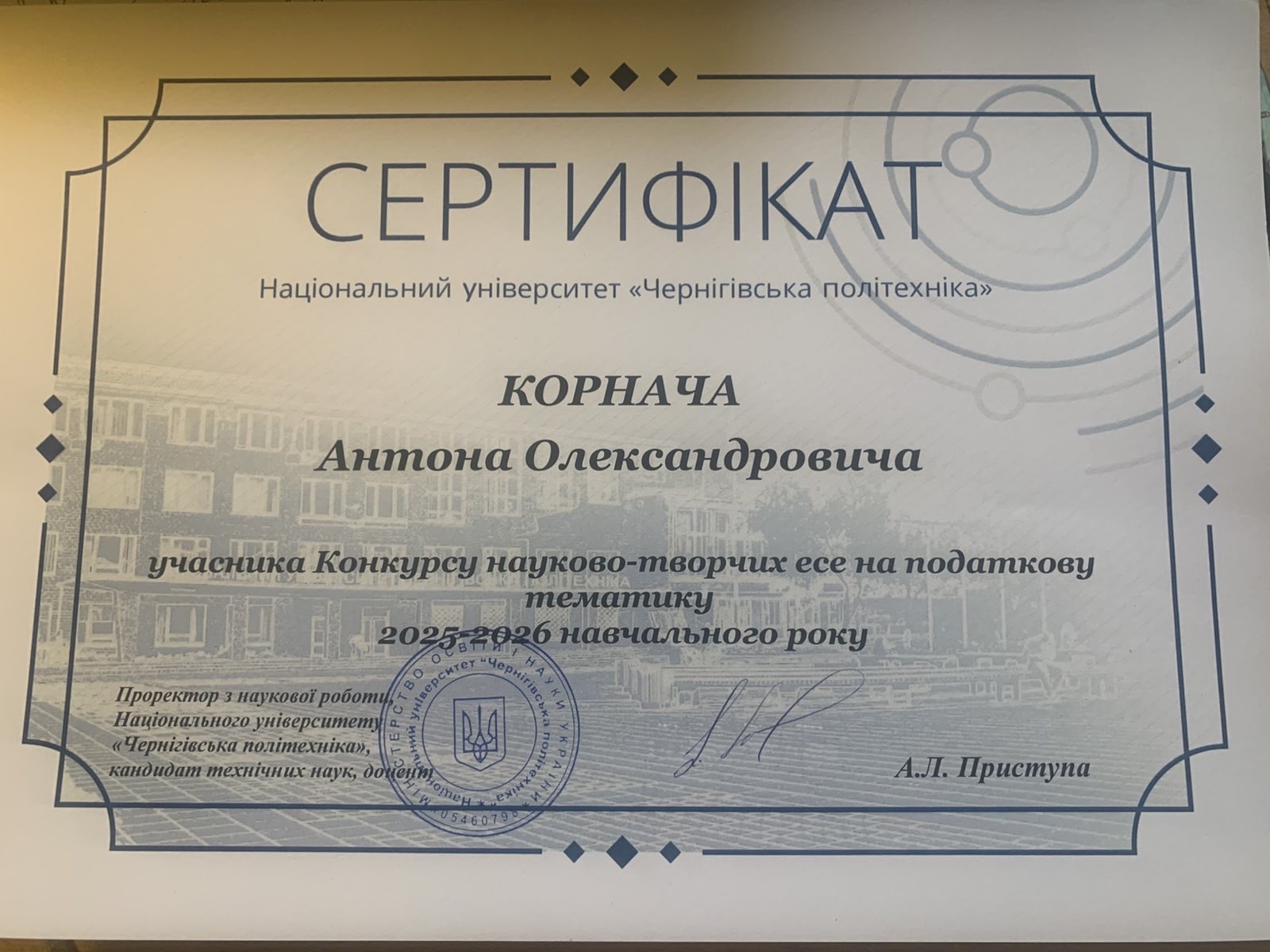 11. Корнач Антон, сертифікат учасниці конкурсу