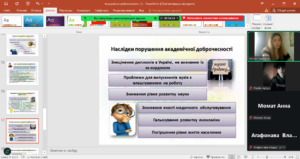Під час кураторської години здобувачі освіти мали змогу поглибити вже наявні знання про принципи академічної доброчесності, актуалізувати розуміння важливості чесності в освітньому процесі та ще раз звернути увагу на правила, яких необхідно дотримуватися під час навчання. Також було обговорено ключові цінності доброчесності та їх роль у формуванні відповідального студентського середовища.