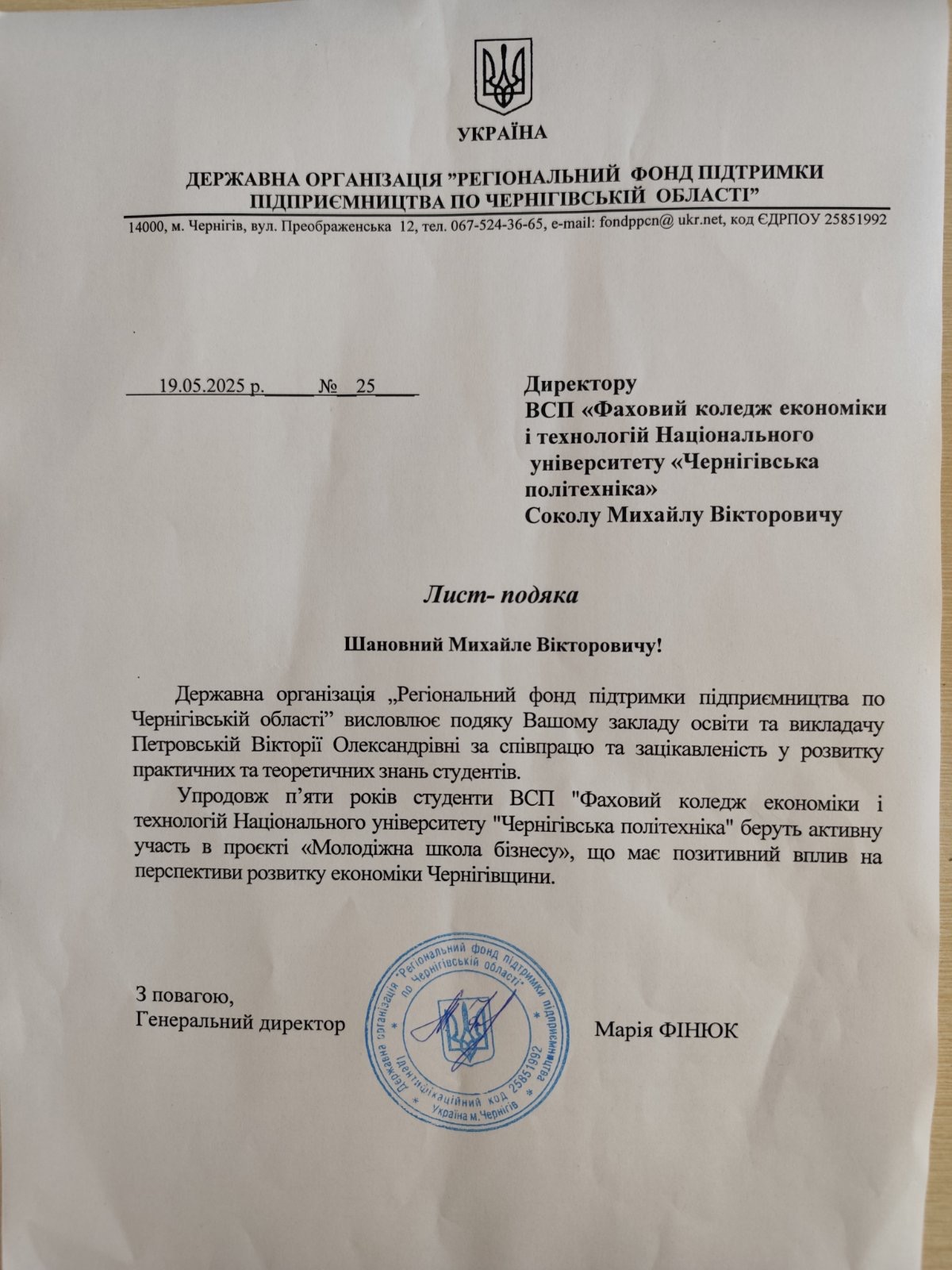 З 12 по 16 травня 2025 року здобувачі освіти економічного відділення освітньо-професійних програм Економіка та Фінанси, банківська справа та страхування пройшли навчання у «Молодіжній школі бізнесу» в рамках обласної Програми розвитку малого і середнього підприємництва на 2021-2027роки.