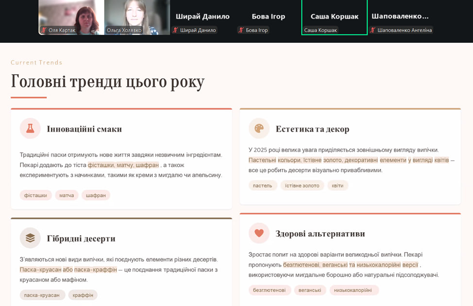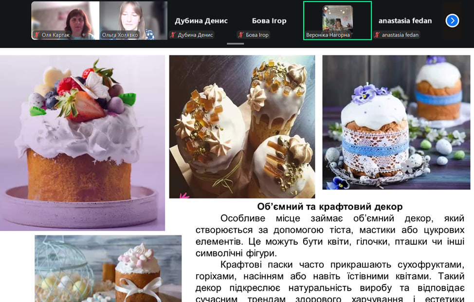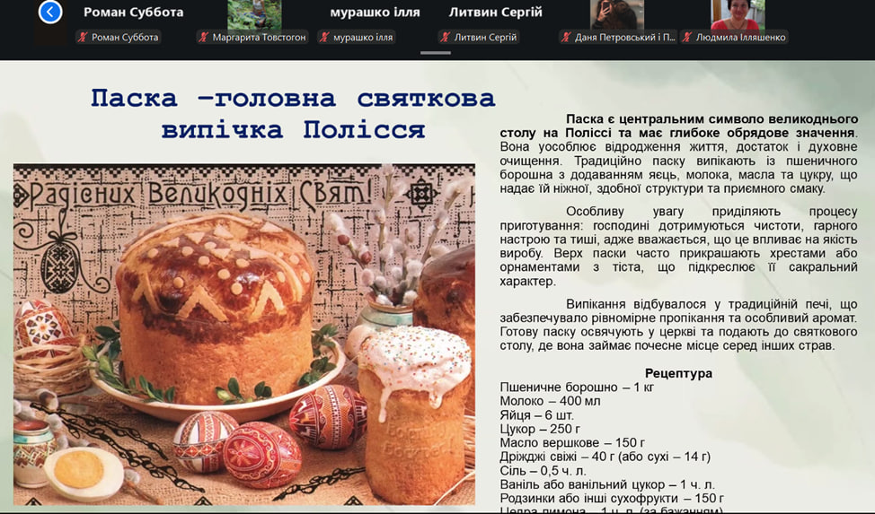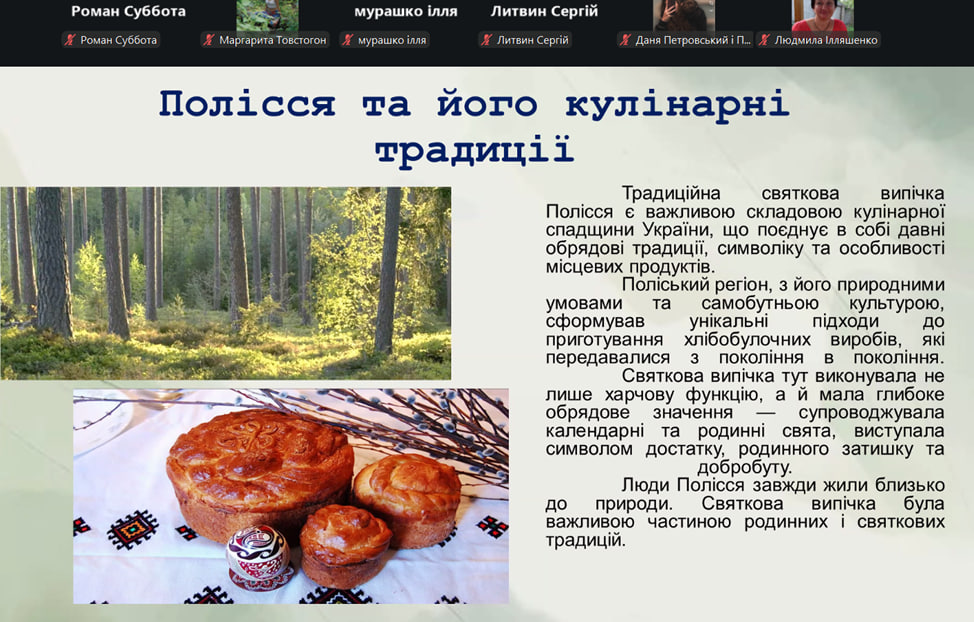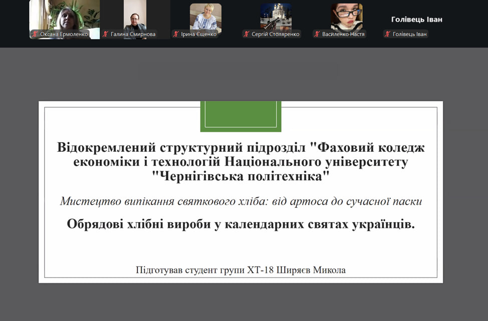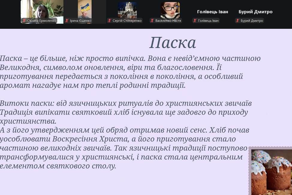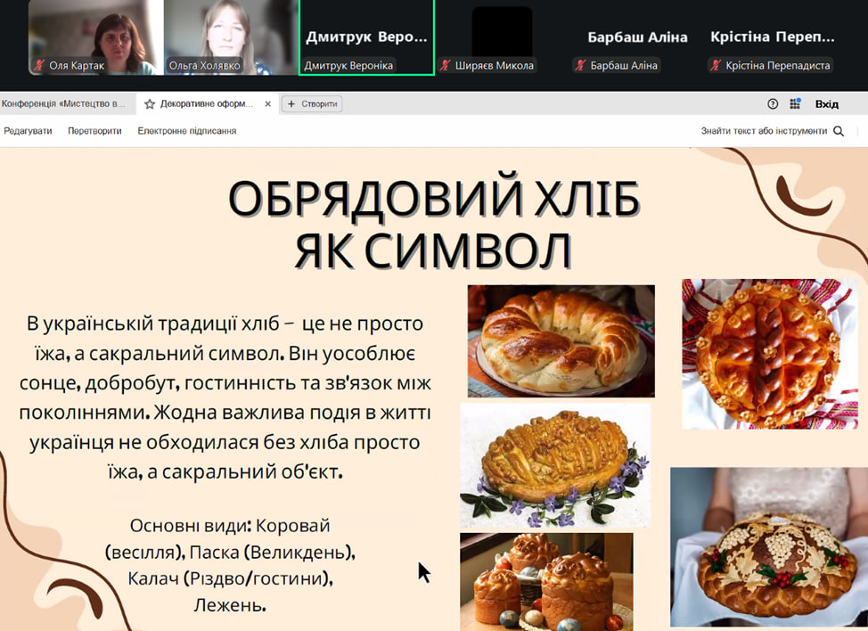 У ході конференції здобувачі освіти представили доповіді та презентації, у яких висвітлили технологічні особливості випікання святкового хліба, дослідили еволюцію традицій – від стародавнього артоса до сучасної паски, а також продемонстрували сучасні підходи до оформлення виробів.