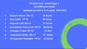 Олімпіада з англійської мови для здобувачів 1 та 2 курсів