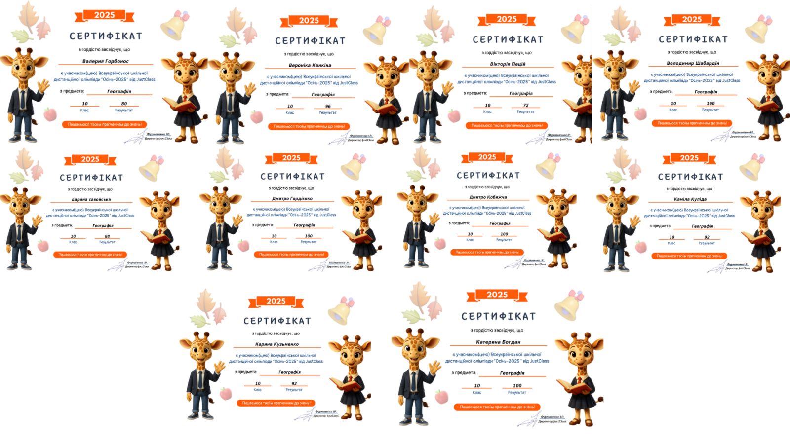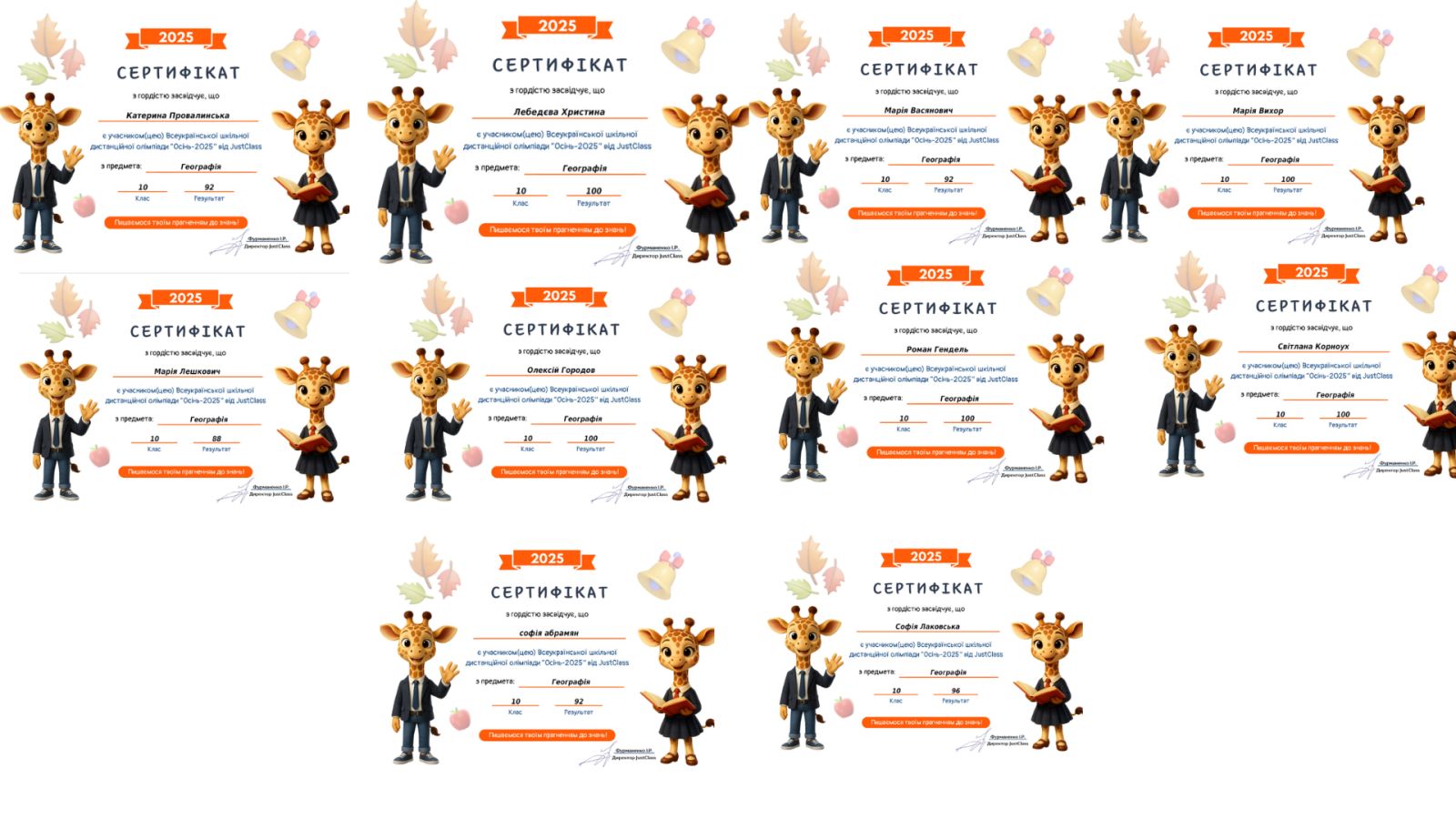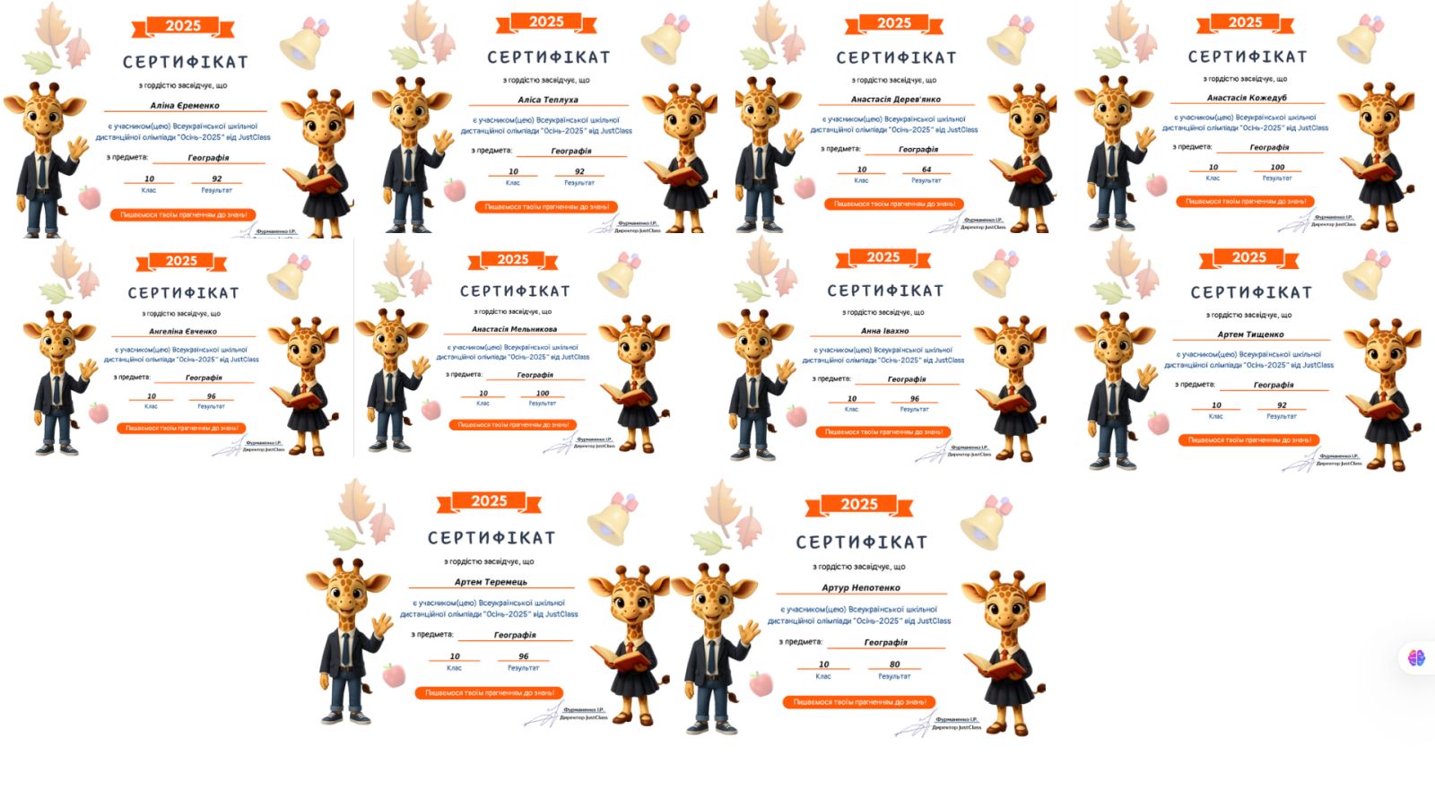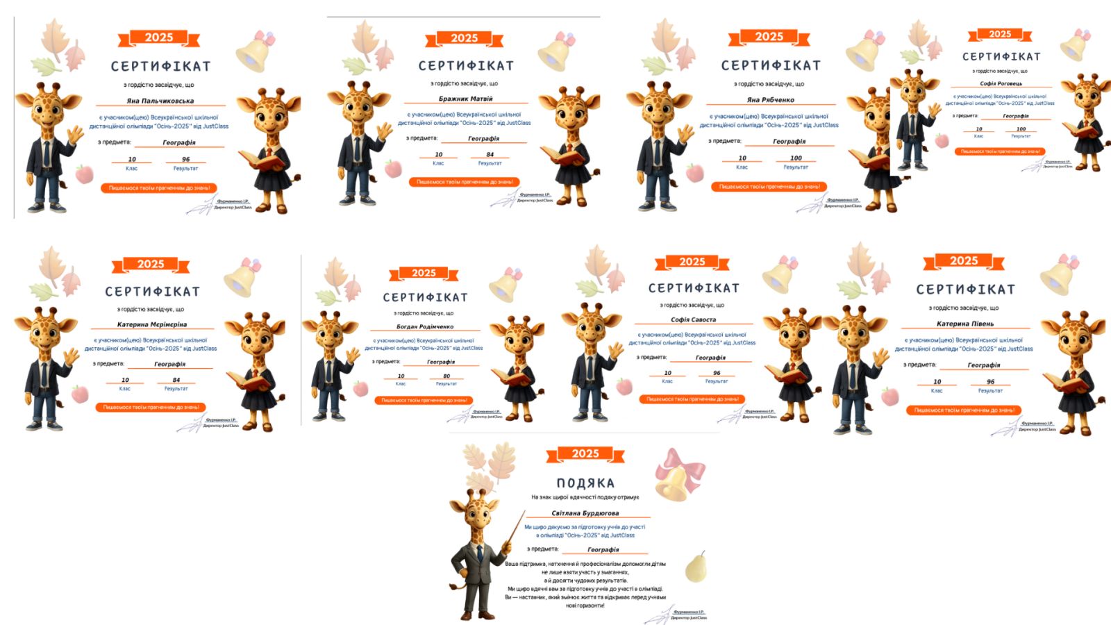 Підсумки проведення Всеукраїнської онлайн-олімпіади з географії на платформі JustClass