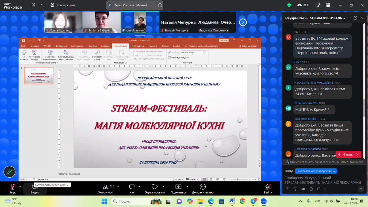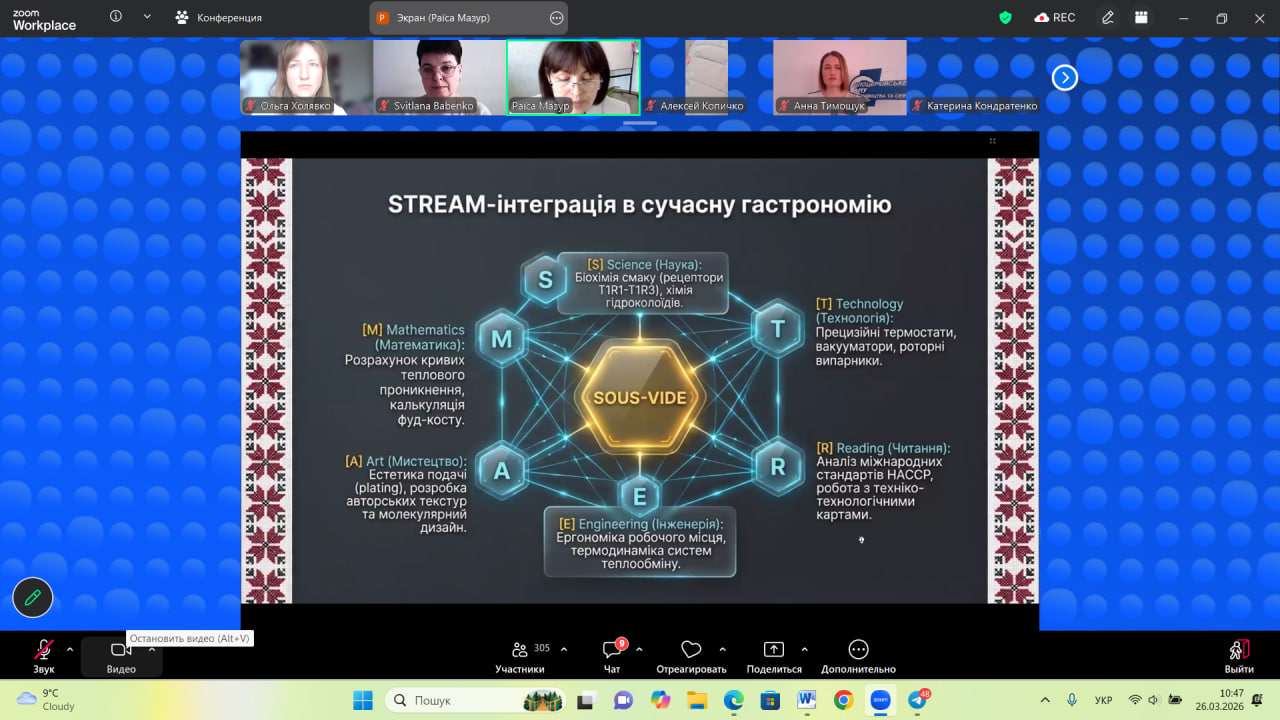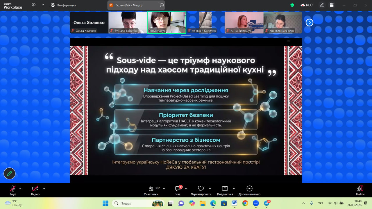 Викладачка циклової комісії харчових технологій, готельно-ресторанної справи та кейтерингу Ольга Холявко взяла участь у Всеукраїнському круглому столі для педагогічних працівників харчового напряму на тему: «STREAM-фестиваль: магія молекулярної кухні».