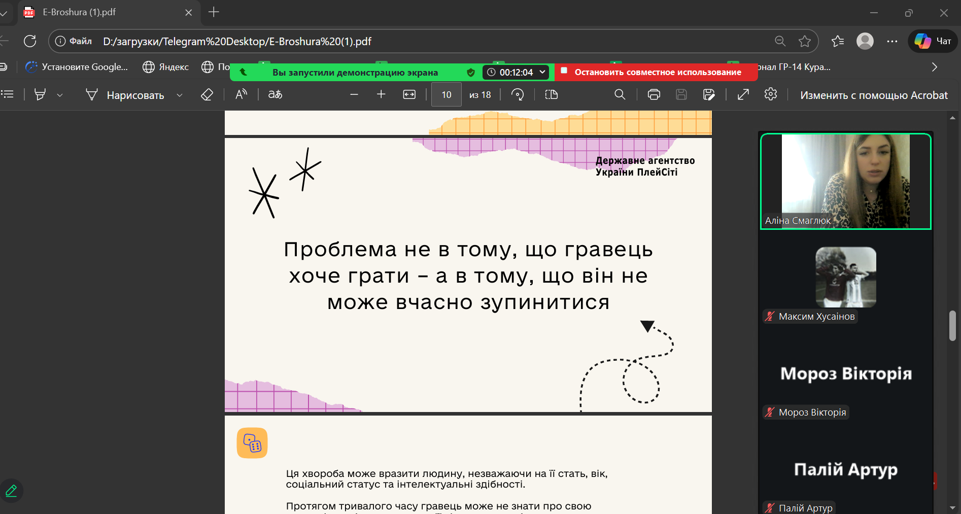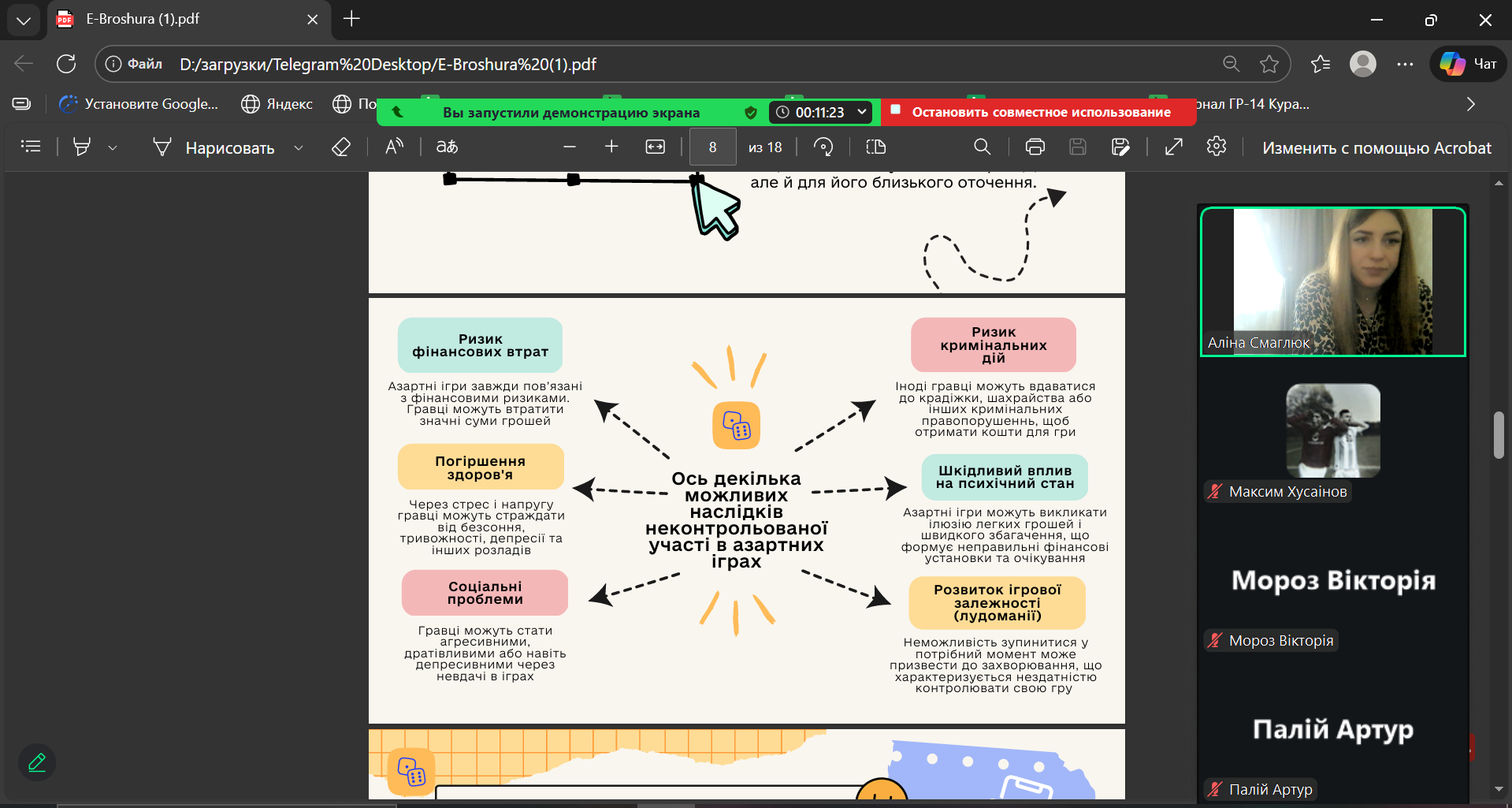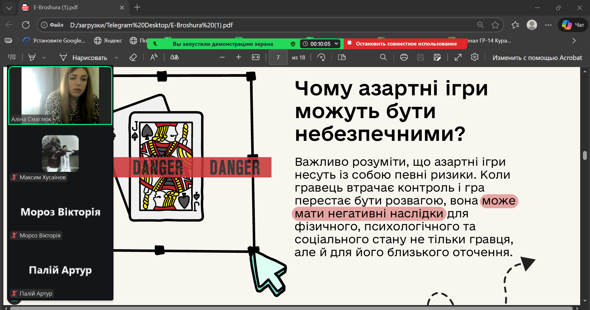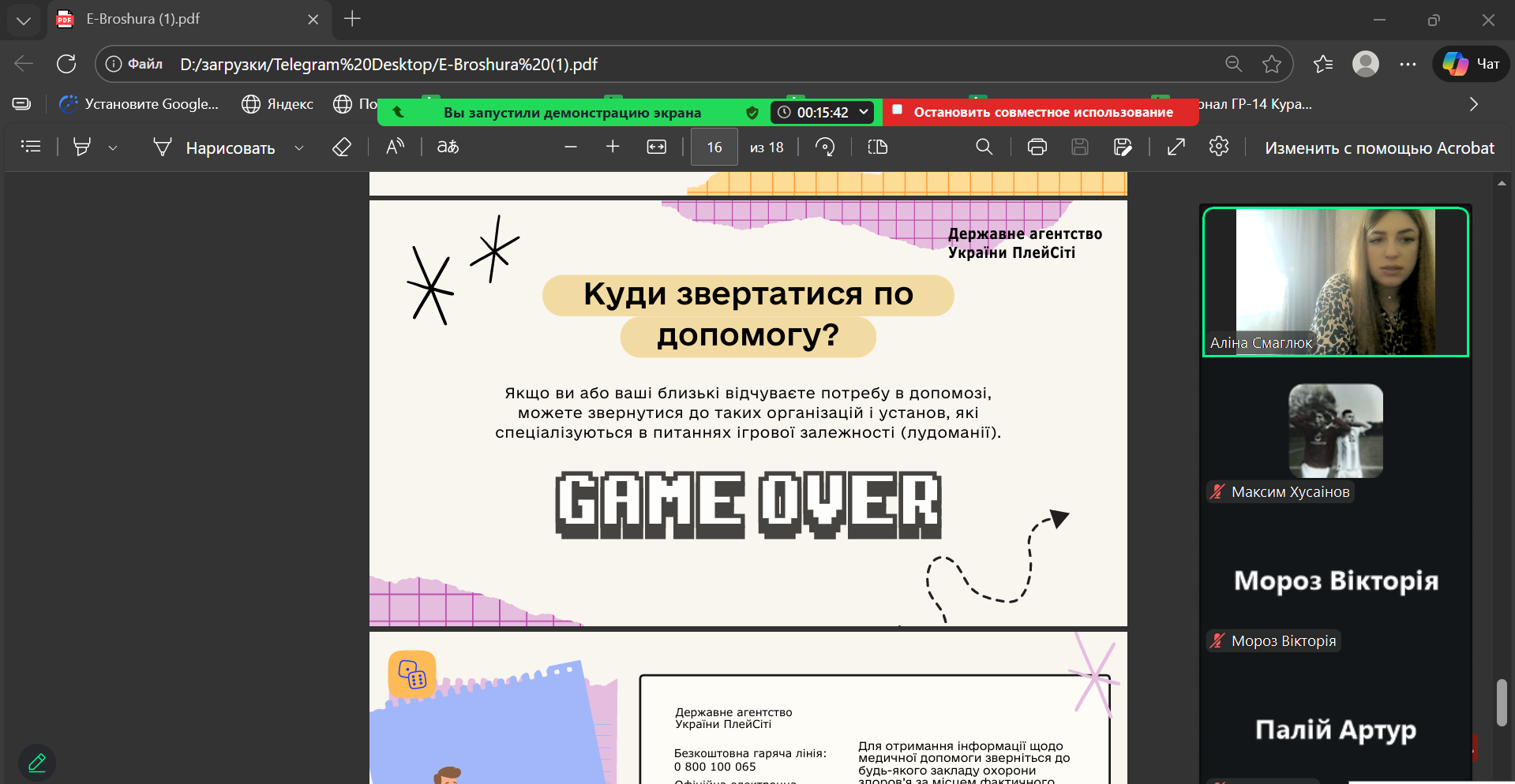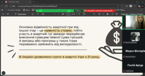 20 січня 2026 року у академічних групах ГР-17 та ХТ-14 куратор А.О. Смаглюк провела кураторську годину, присвячену небезпеці азартних ігор та проблемі ігрової залежності.