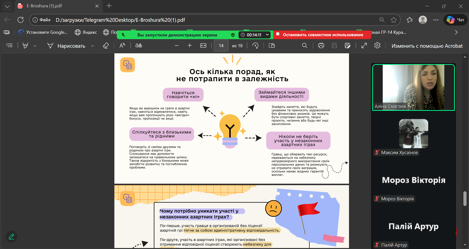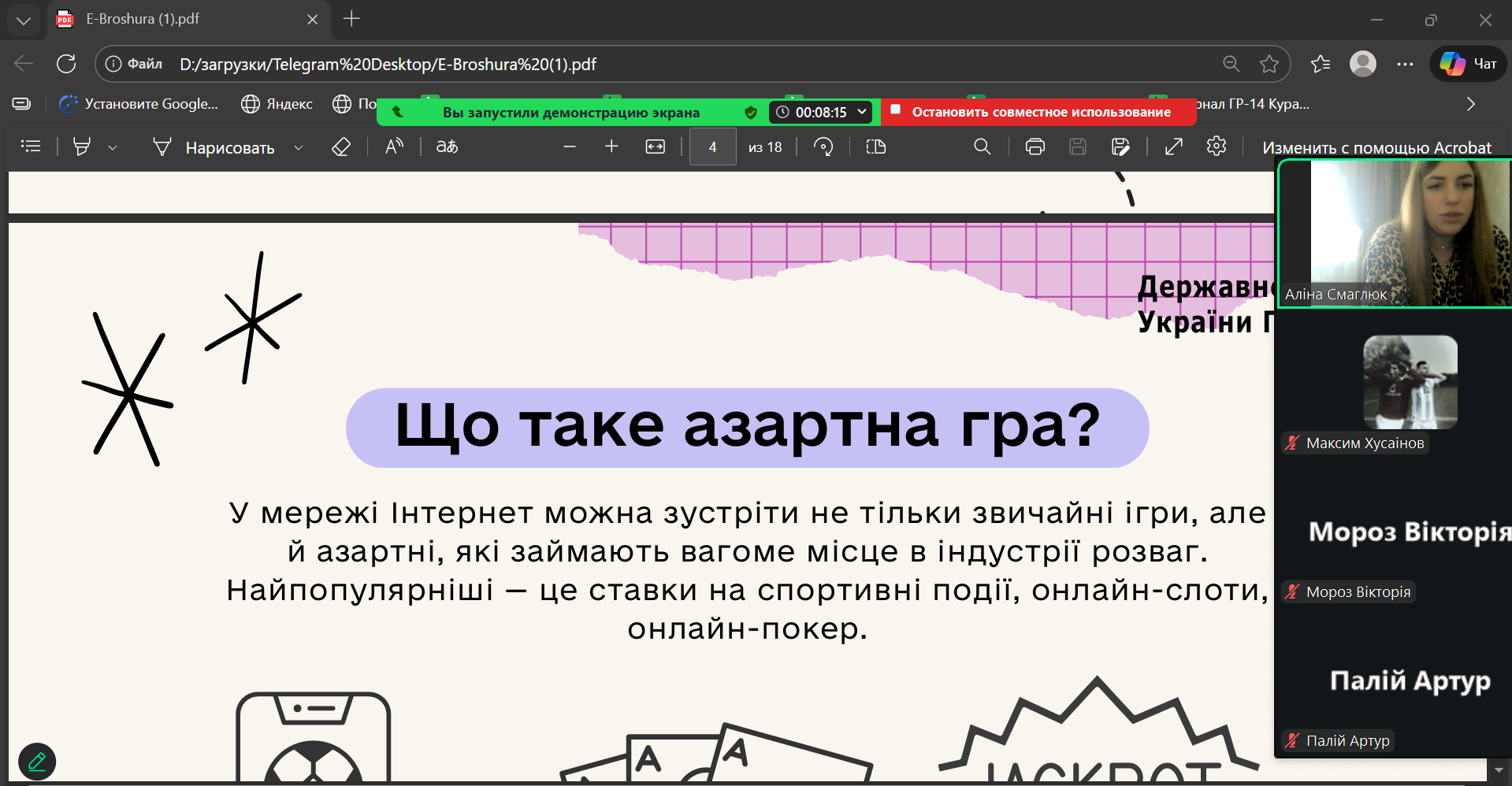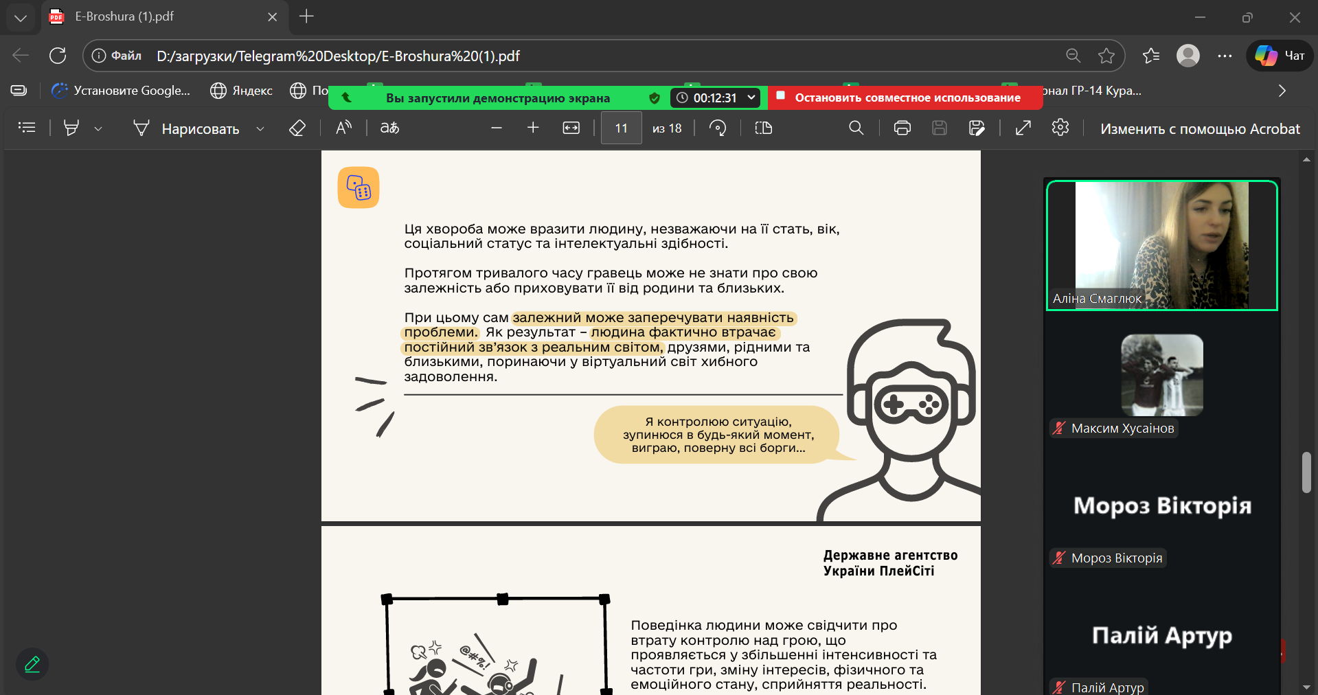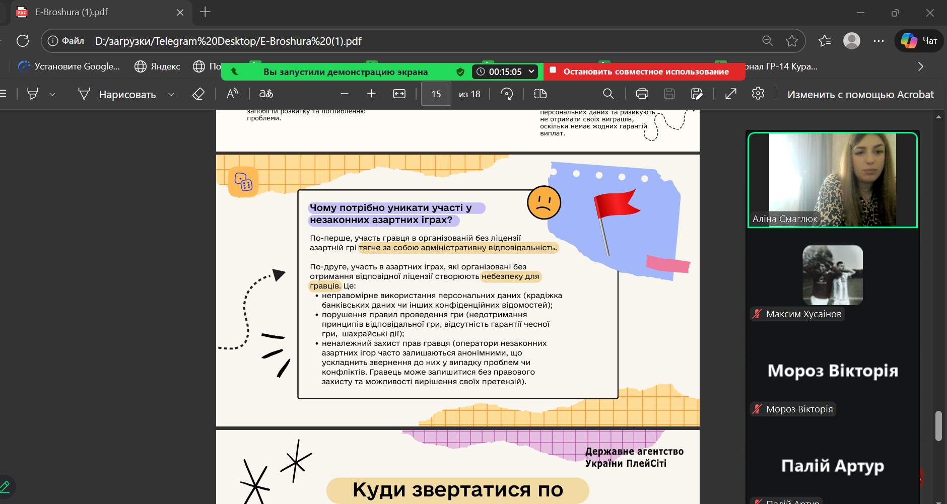 20 січня 2026 року у академічних групах ГР-17 та ХТ-14 куратор А.О. Смаглюк провела кураторську годину, присвячену небезпеці азартних ігор та проблемі ігрової залежності.