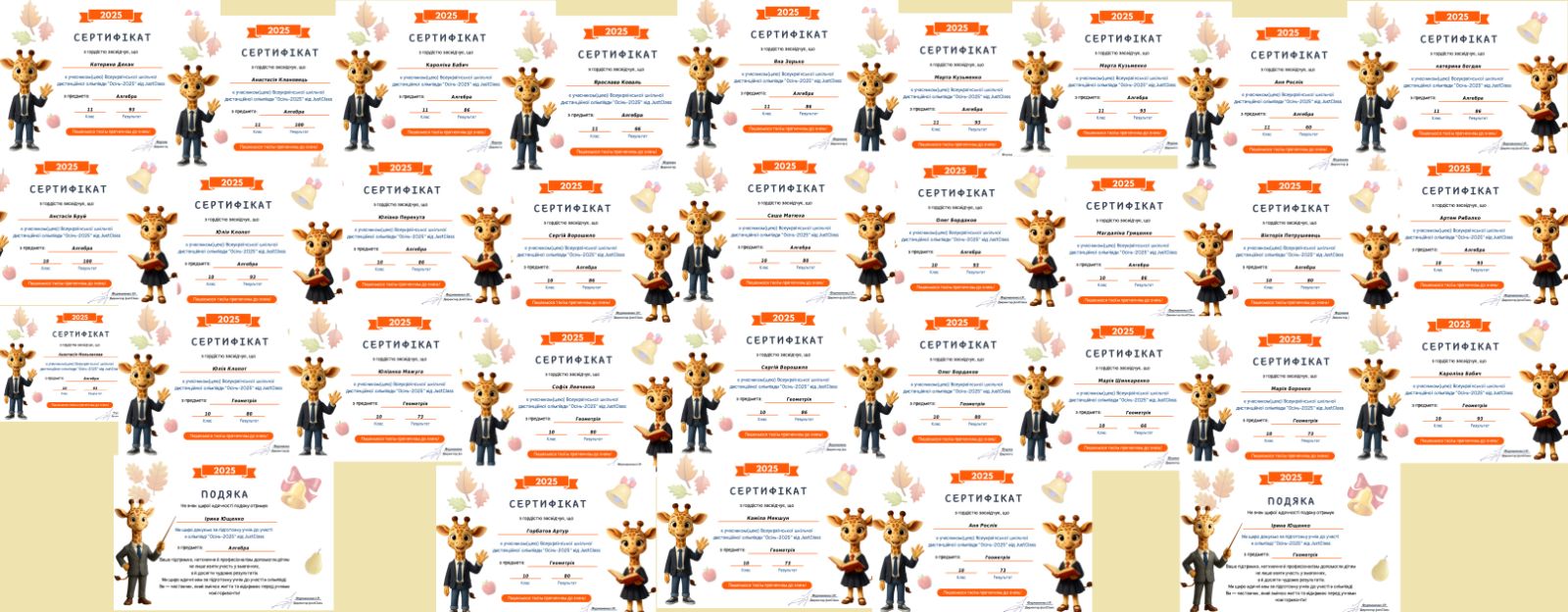 Щиро вітаємо всіх учасників за їхню наполегливість, відповідальний підхід до навчання та прагнення до знань. Бажаємо подальших успіхів, натхнення та нових перемог у світі чисел та формул!