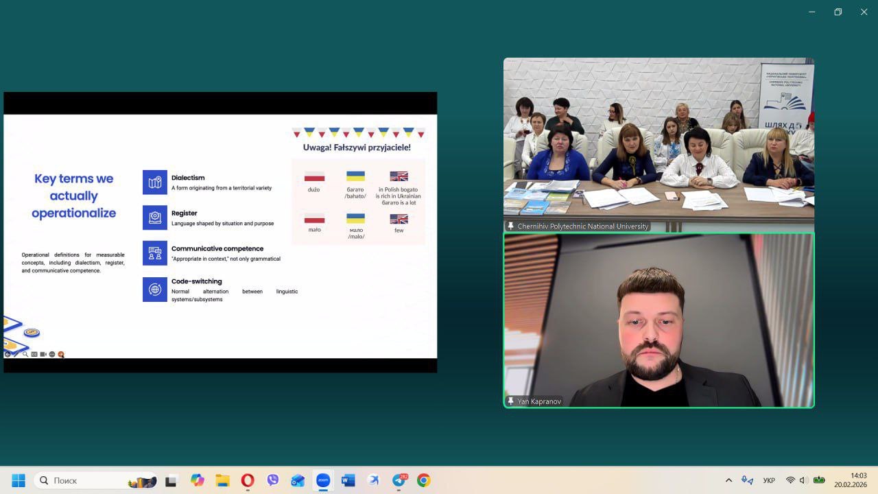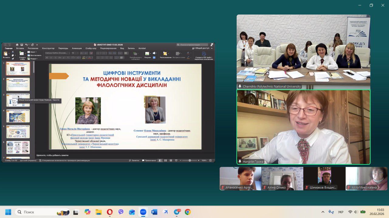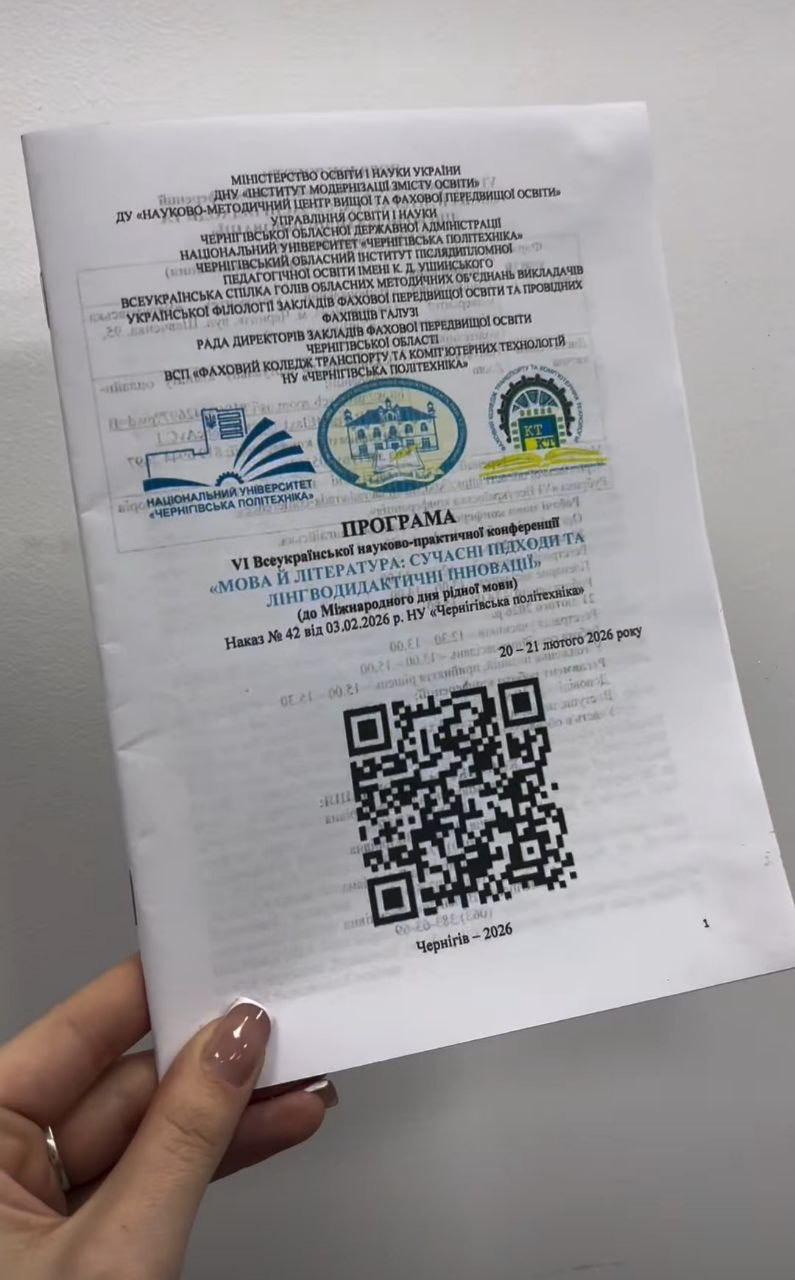 20–21 лютого 2026 року в Національному університеті«Чернігівська політехніка» відбулася VІ Всеукраїнська науково-практична конференція «Мова й література: сучасні підходи та лінгводидактичні інновації», приурочена до Міжнародного дня рідної мови. Захід об’єднав науковців, викладачів, учителів-словесників і здобувачів освіти з різних регіонів України задля фахового обговорення актуальних проблем мовно-літературної освіти та пошуку інноваційних підходів до викладання. Метою конференціїстало обговорення актуальних питань формування комфортного й функціонального українськомовного середовища в межах Стратегії популяризації української мови до 2030 року «Сильна мова – успішна держава» та відповідно до Закону України «Про забезпечення функціонування української мови як державної».