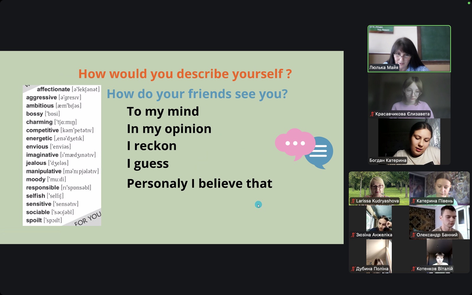 23.09.2025 Люлька М.М. провела відкрите заняття на тему: « Люди і відносини.». Здобувачі освіти гр.ОО-1 проявили стійкі уміння і навички під час оперування лексикою та граматикою в усному мовленні. У ході заняття була проведена групова та парна робота у цікавій формі із застосуванням інноваційних технологій : Canva; інтерактивна дошка Padlet; навчальний застосунок Wordwall, за допомогою яких студенти вдосконалювали навички говоріння , аудіювання та письма. Створенні інтерактивні вправи залучили увагу здобувачів освіти та зробили заняття більш цікавим та змістовним. Викладач продемонструвала відмінне володіння предметом та методикою, вміння організувати та зацікавити студентів, вміле застосування відповідних форм роботи та матеріалів. Здобувачі освіти вправно володіли вивченою лексикою, співпрацювали з викладачем, аналізували, висловлювали власні думки, обговорювали проблемні питання. Сучасні методи навчання , вдало підібраний відео матеріал, цікаві різноманітні завдання активізували діяльність студентів заохочуючи їх до креативного мислення при вивченні теми. Заняття було проведене на високому методичному рівні із залученням сучасних технічних засобів і заслуговує схвальних відгуків.