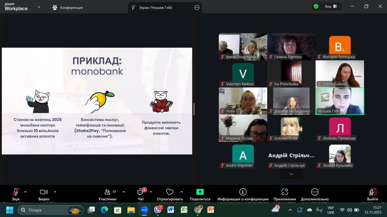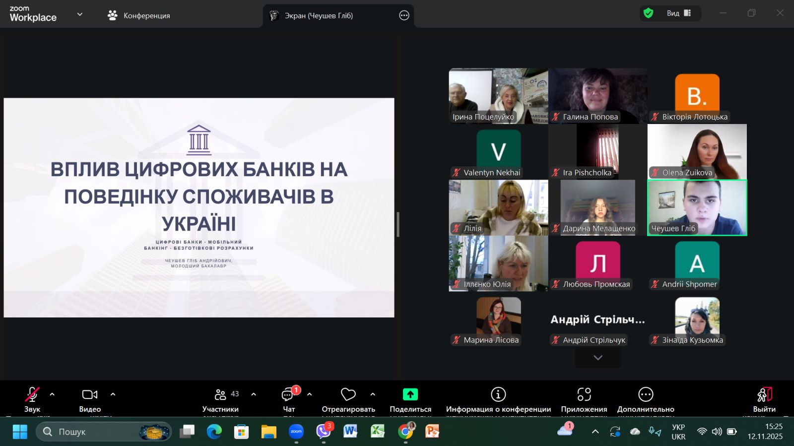 - Гліб ЧЕУШЕВ – здобувач ВСП «Фаховий коледж економіки і технологій НУ «Чернігівська політехніка» – Вплив цифрових банків на поведінку споживачів в Україні, керівник Галина ПОПОВА – голова циклової комісії фінансово-економічних дисциплін, викладач вищої кваліфікаційної категорії;
