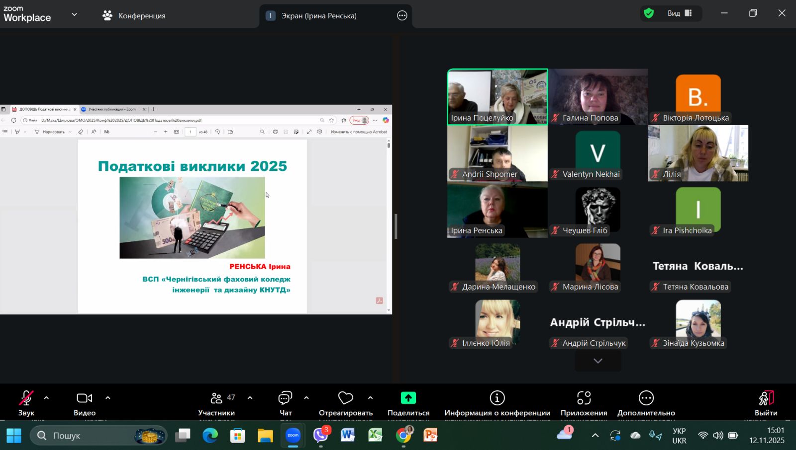 - Ірина РЕНСЬКА– голова циклової комісії обліково-аналітичних та економічних дисциплін, викладач-методист Відокремленого структурного підрозділу «Чернігівський фаховий коледж інженерії та дизайну Київського національного університету технологій та дизайну» – Податкові виклики 2025;
