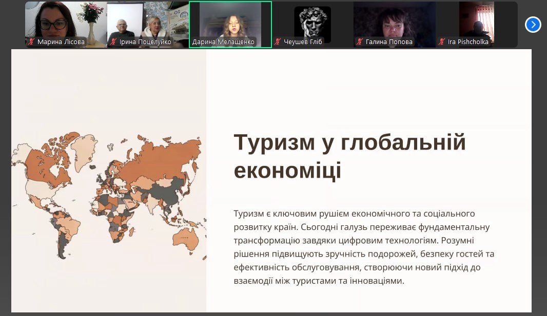 - Дарина МЕЛАЩЕНКО – студентка ВСП «Фаховий коледж транспорту та комп’ютерних технологій Національного університету «Чернігівська політехніка» – SMART TOURISM/Розумний туризм: трансформація подорожей через цифрові інновації.