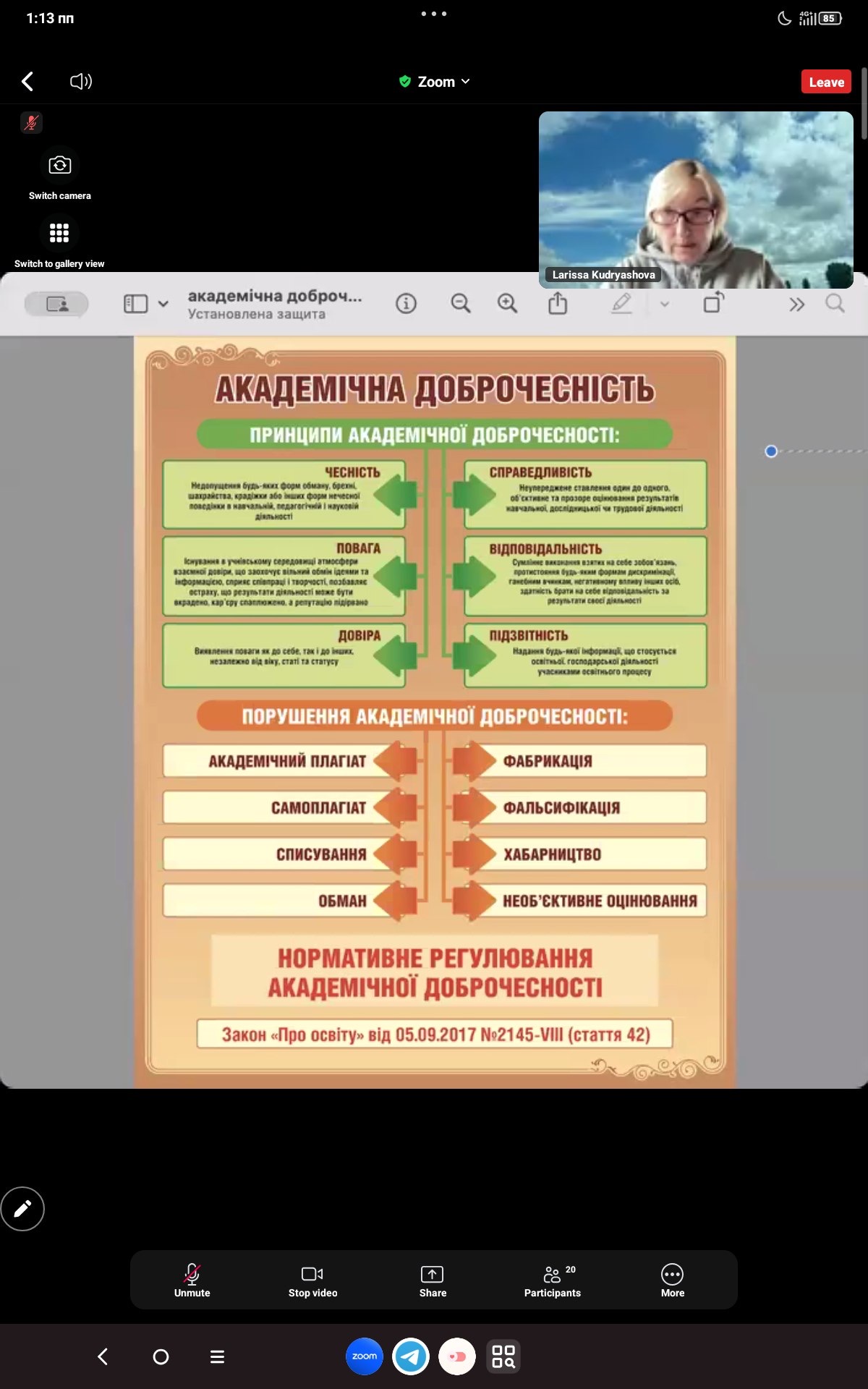Виховна година для групи ПТ-10 присвячена темі “Академічна доброчесність”