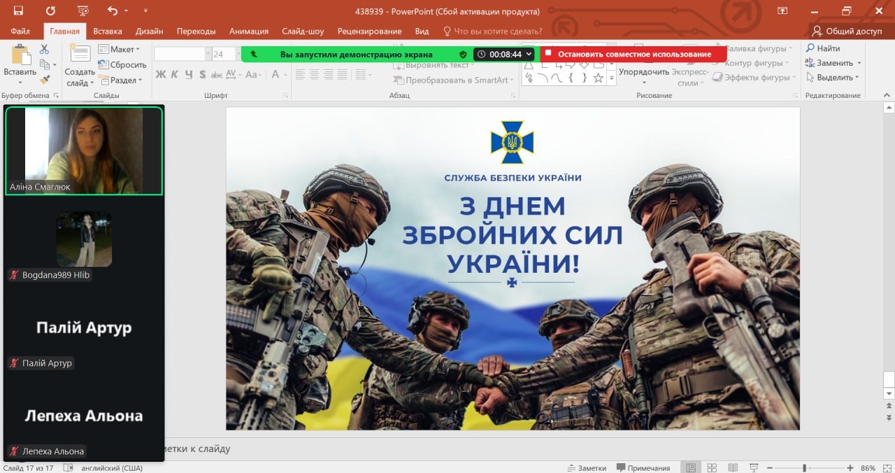 01 грудня 2025 року для здобувачів фахової передвищої освіти академічних груп ГР-17 та ХТ-14 було проведено виховну годину, присвячену Дню Збройних Сил України, який щороку відзначають 6 грудня.
