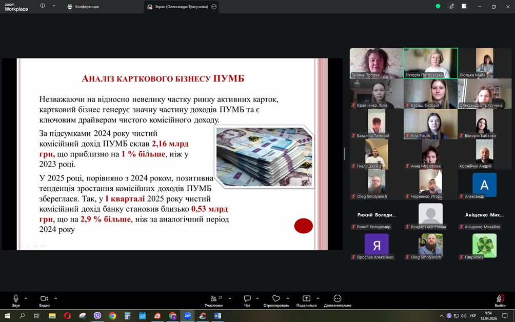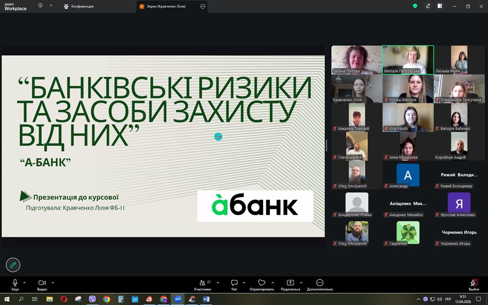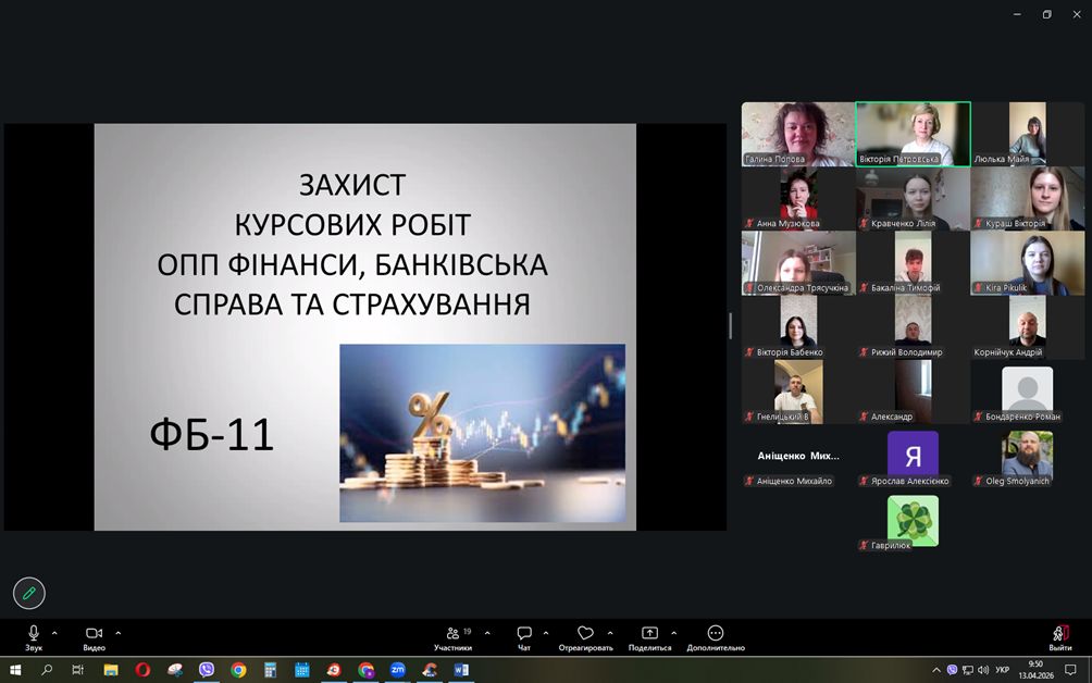 13 квітня 2026 року відбувся в on-line режимі захист курсових робіт з дисциплін «Банківські операції» ОПП Фінанси банківська справа та страхування.