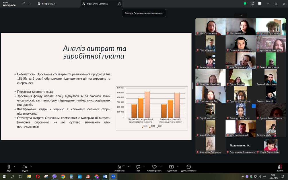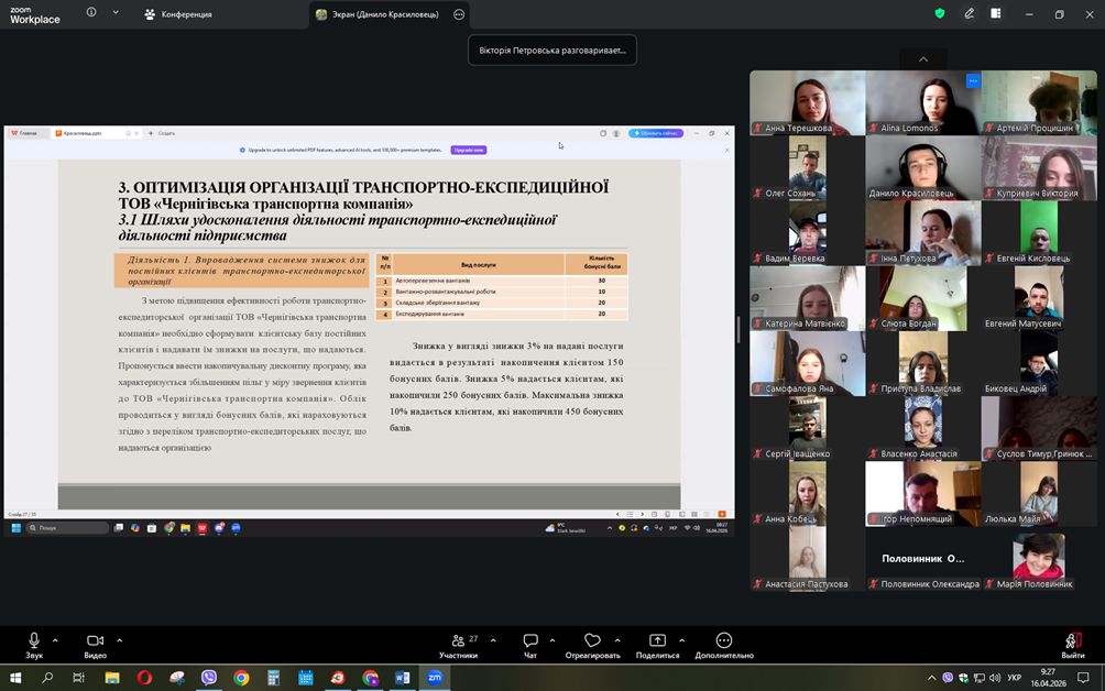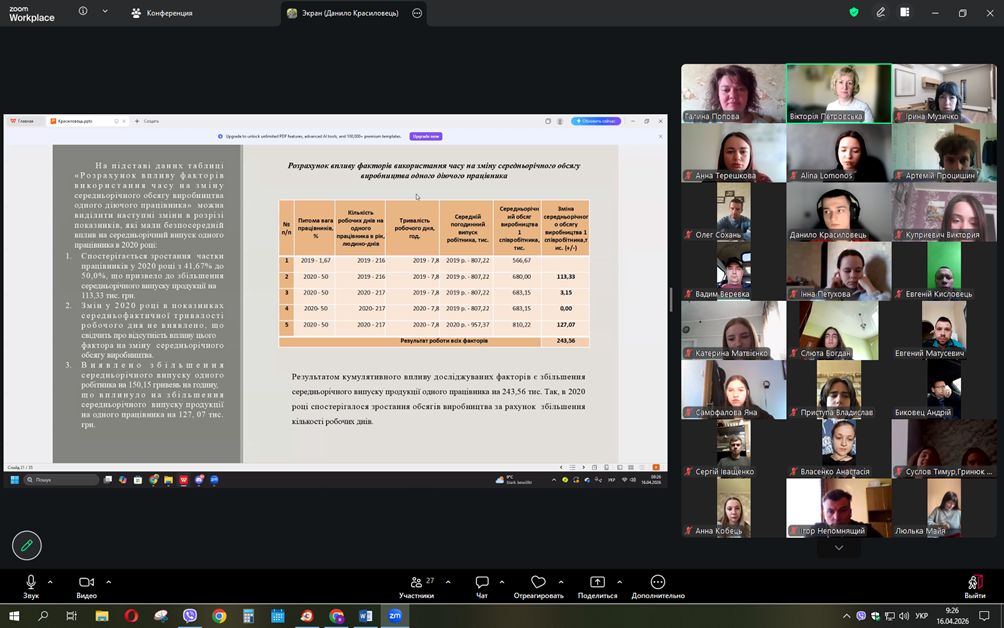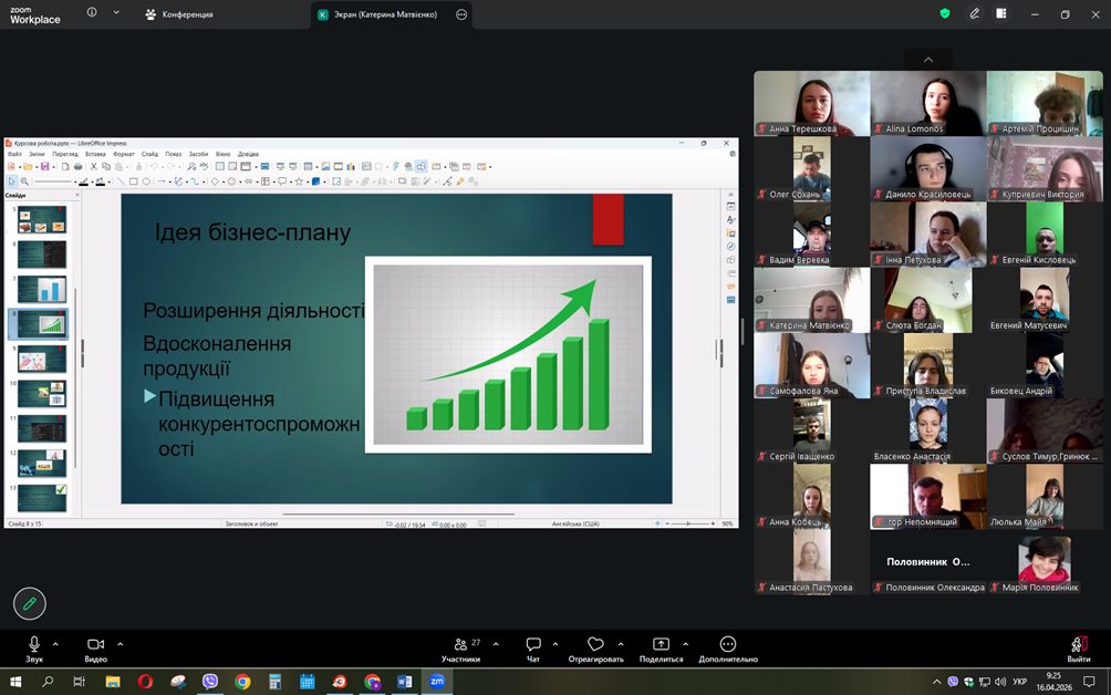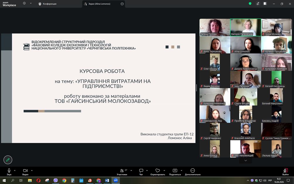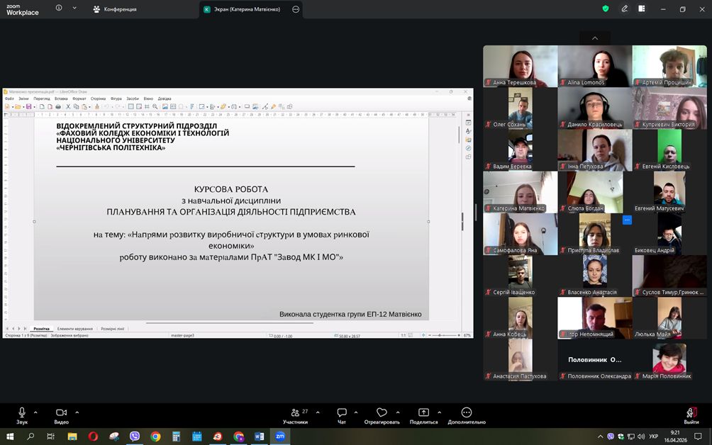 16 квітня 2026 року відбувся в on-line режимі захист курсових робіт з дисциплін «Планування та організація діяльності підприємства» ОПП Економіка.