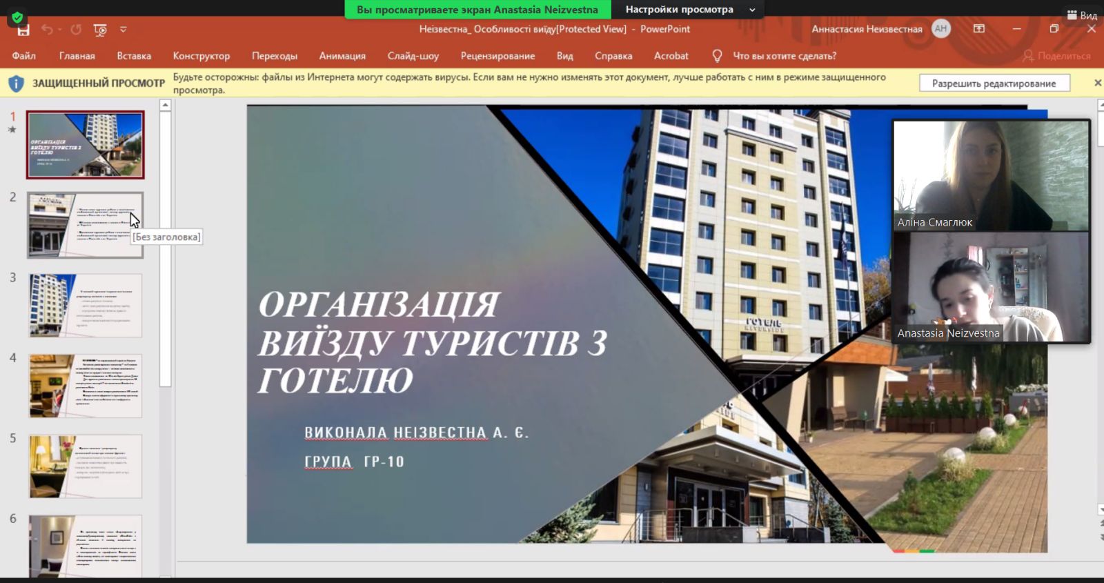 Захист курсових робіт здобувачів фахової передвищої освіти групи ГР-10 ОПП 241 Готельно-ресторанна справа