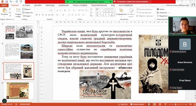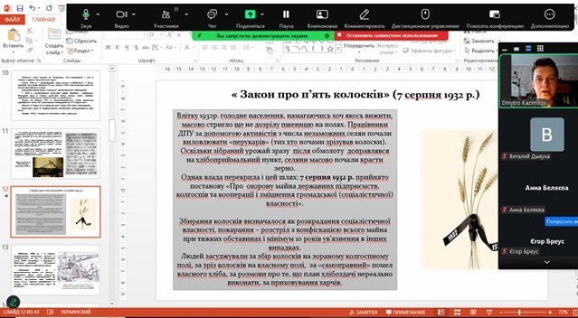 Під час обговорення звернули увагу на причини, перебіг та жахливі наслідки Голодомору 1932–1933 рр. для демографічного потенціалу, культурного та духовного світу українців. Водночас не забули і про Голодомори 1921–1923 та 1946–1947 рр., які більшовики організували для упокорення українського народу, знищення його як політичної нації. Історики переконані, що до більшовицької окупації в Україні не було жодного випадку масштабного голоду. Загибель мільйонів українців – це результат свідомої злочинної геноцидної політики сталінського режиму проти українських селян, священиків, інтелігенції.