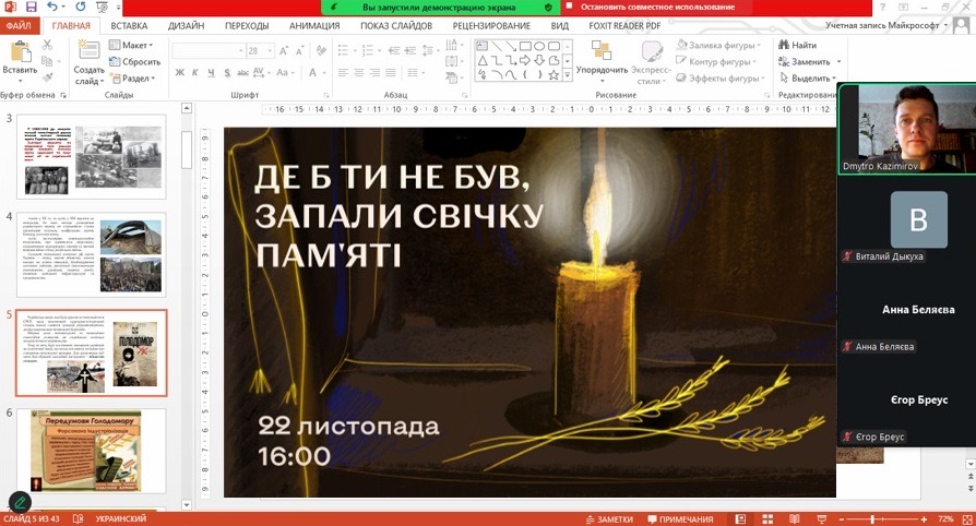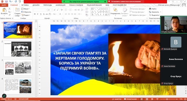 До дня пам’яті жертв Голодоморів проведена інформаційна бесіда зі здобувачами груп ПТ-9 та СР-11 21 листопада 2025 р. Зустріч організував куратор групи Дмитро Казіміров.
