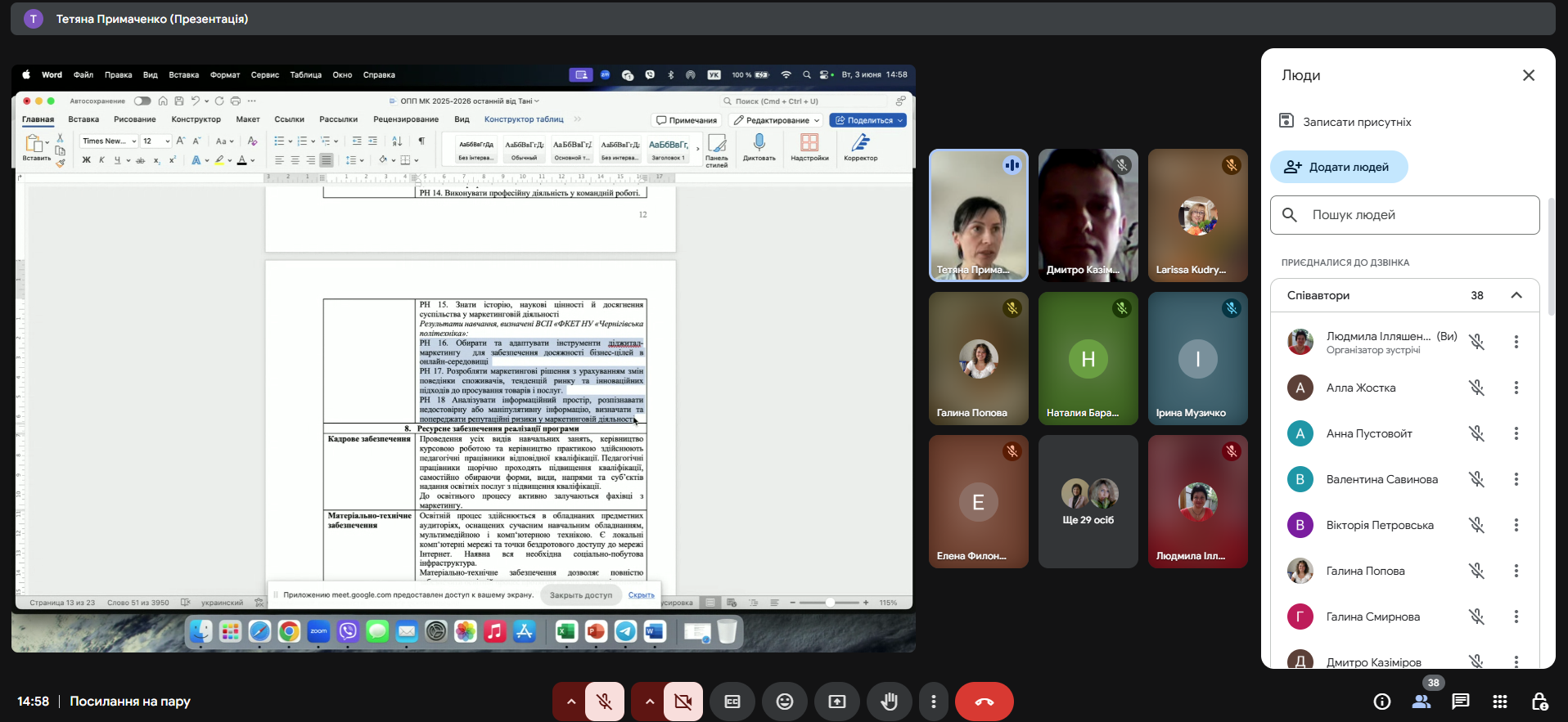 Кожен керівник охарактеризував особливості освітньо-професійних програм, ознайомив з переліком освітніх компонентів своїх програм та їх логічною послідовністю. Відмітили зміни, що відбулися в даних програмах в порівнянні з попередніми.
